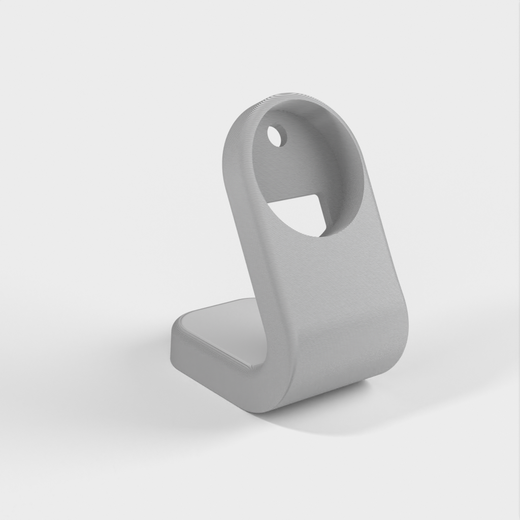 Prosta stacja dokująca do ładowania zegarka Apple Watch, którą można przymocować do ściany za pomocą dwustronnej taśmy. Stacja dokująca zapewnia zorganizowany i wygodny sposób ładowania zegarka Apple Watch, jednocześnie pięknie eksponując zegarek na ścianie.
