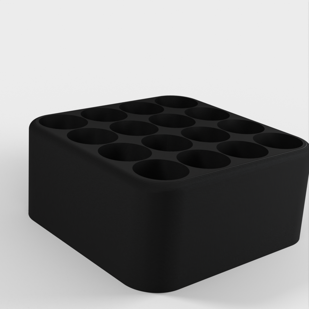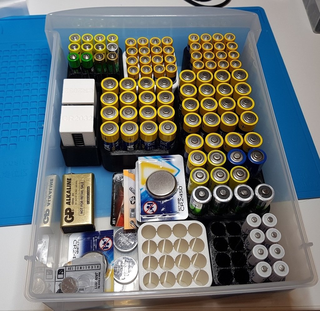 Jest to prosty uchwyt na baterie zaprojektowany w celu uporządkowania szuflad. Uchwyt na baterie może być używany do baterii AAA, AA i CR2032.