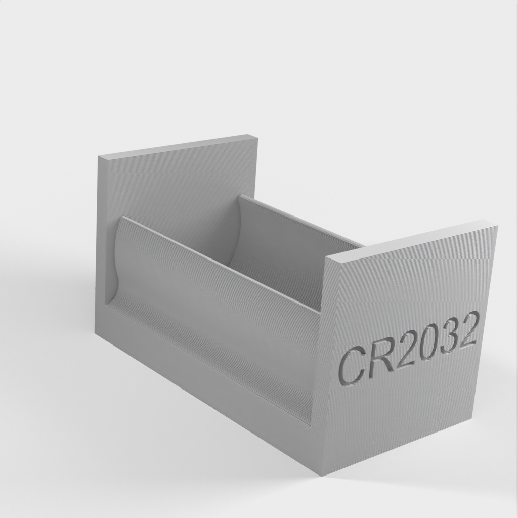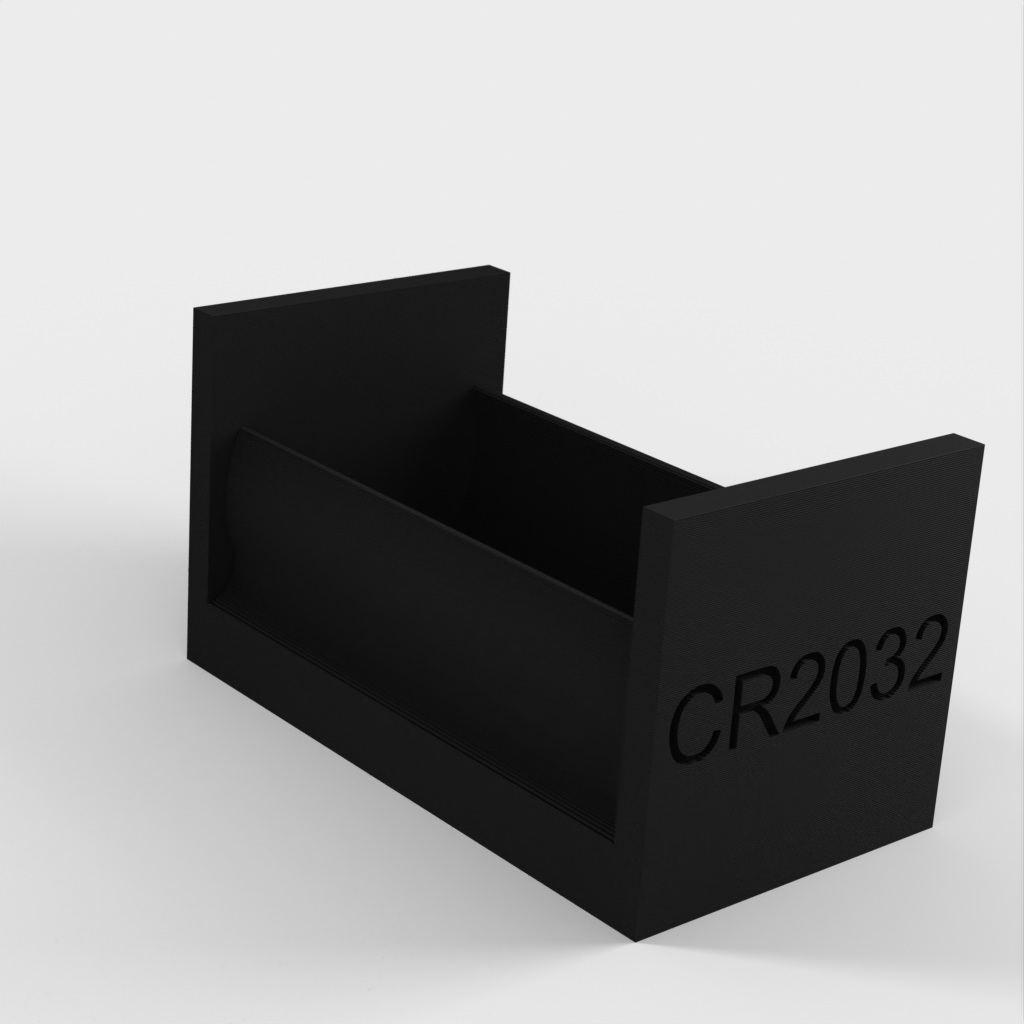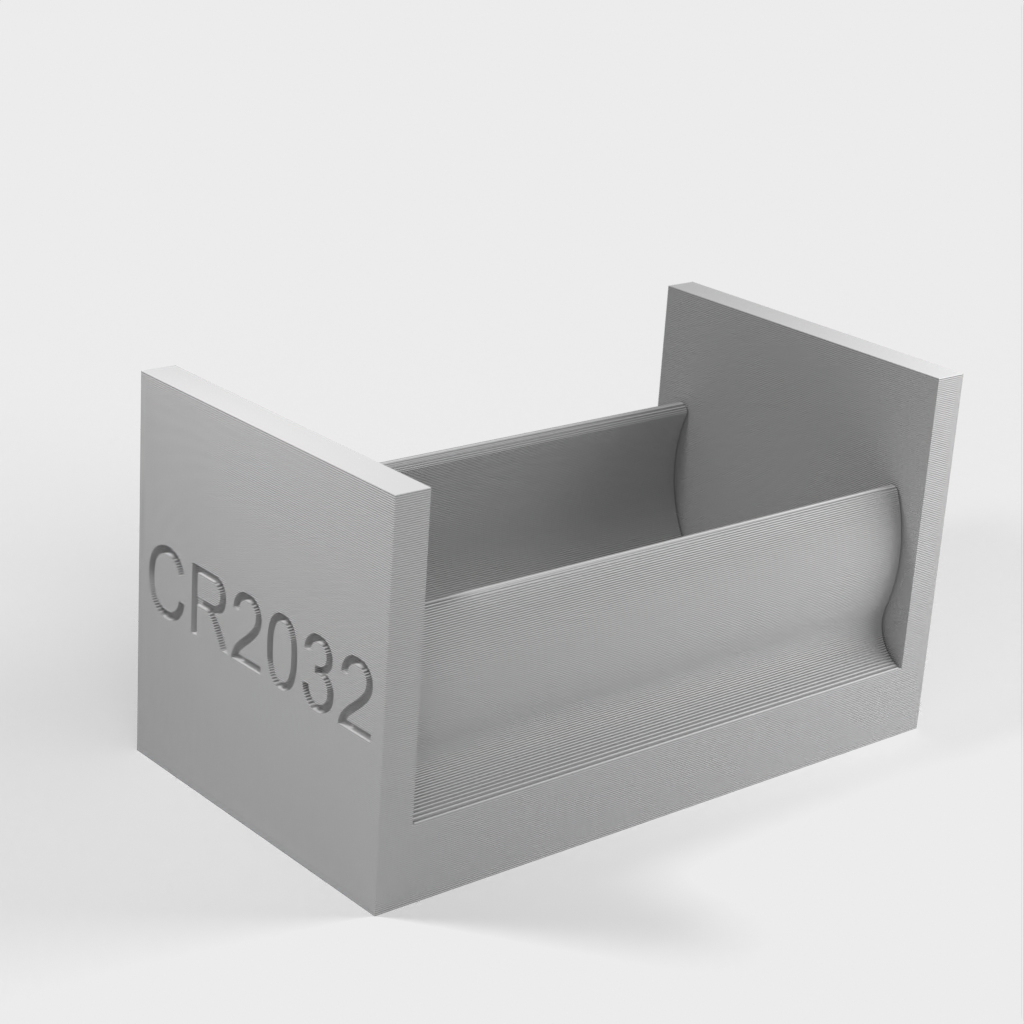 Baterie CR2032 są bezpiecznie trzymane na miejscu za pomocą klipsów. W przypadku baterii wielokrotnego ładowania może być konieczne przeskalowanie modeli o 3-5% (w osi x i y).