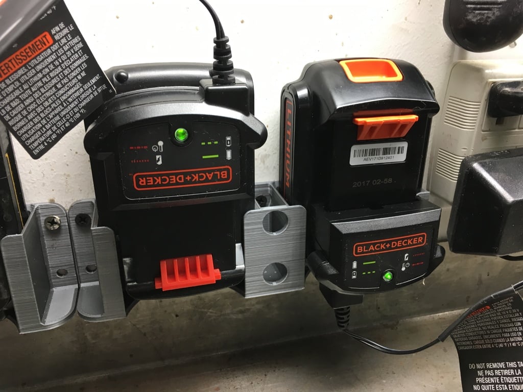 Pojedyncze lub podwójne uchwyty na baterie utrzymują baterie Black & Decker (i na rynku wtórnym) przy użyciu dołączonego uchwytu ładowarki. Akumulatory mogą być mocowane do góry nogami lub do dołu.