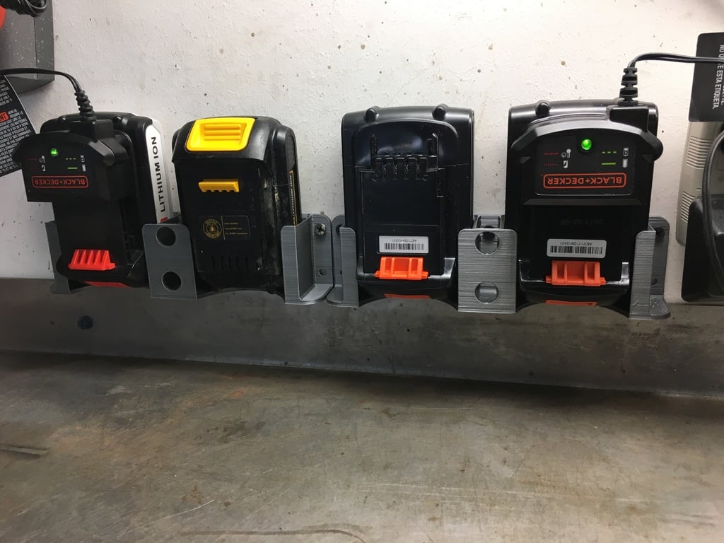 Ponieważ są one przeznaczone tylko do trzymania w pozycji pionowej do celów ładowania i pozwalają na tolerancję drukarki, uchwyty są zaprojektowane tak, aby były nieco niechlujne. Nie ładuję akumulatorów DeWalt w uchwytach, ale pasują, więc trzymam je również z dala od drogi.