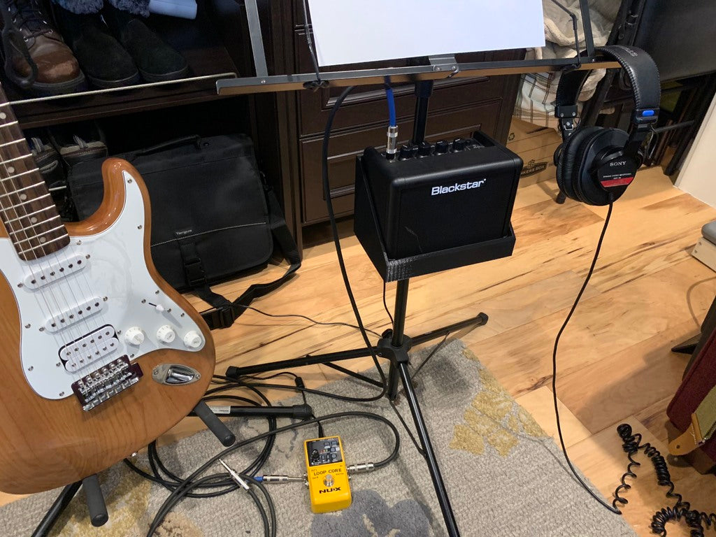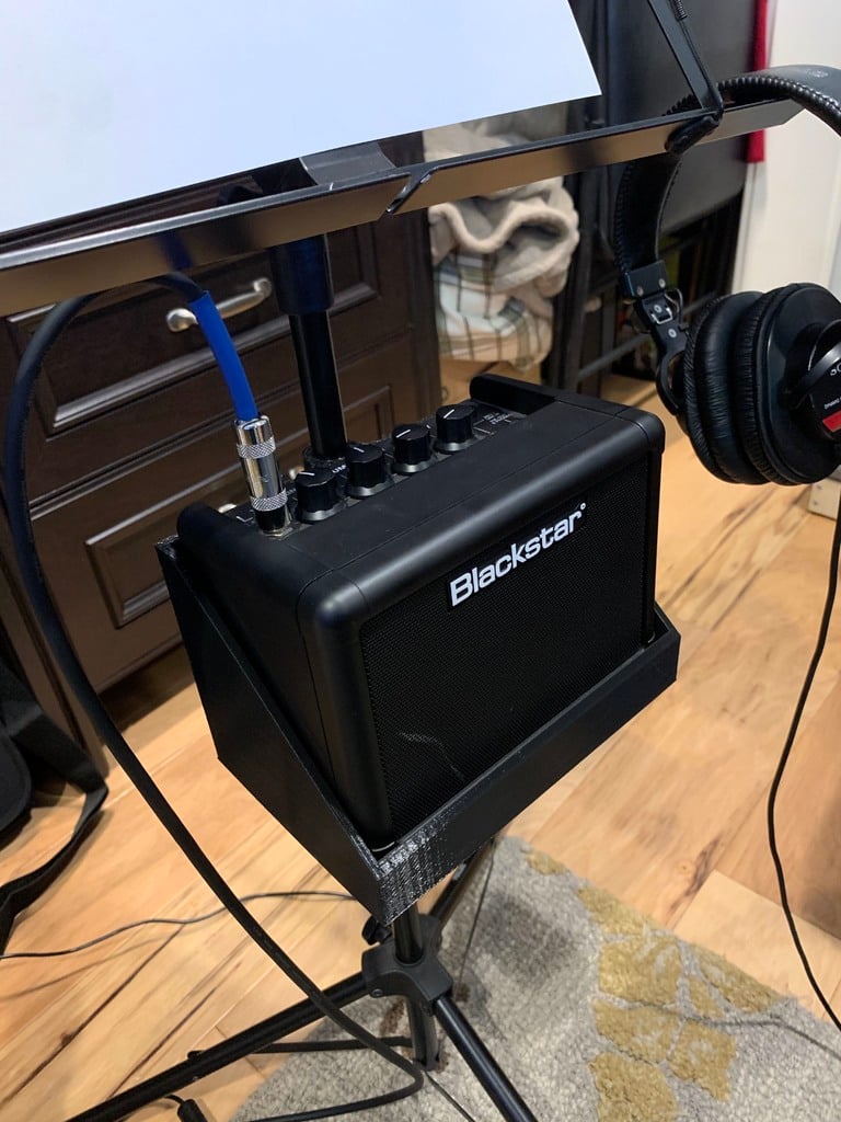 Wspornik jest wykonany tak, aby pasował do standardowych statywów na nuty i zapewnia stabilne i bezpieczne osadzenie wzmacniacza gitarowego Blackstar Fly 3W, nawet podczas intensywnych sesji ćwiczeń. Przyczynia się to do bardziej płynnego i efektywnego treningu, ułatwiając zanurzenie się w świecie muzyki.