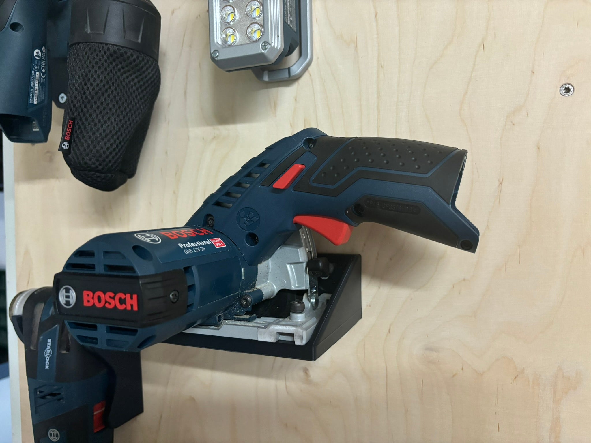 Zorganizuj swoje narzędzia Bosch 12V za pomocą tego praktycznego mocowania na ścianie, zaprojektowanego specjalnie do przechowywania akumulatorów i narzędzi elektrycznych w sposób zorganizowany i łatwo dostępny. Projekt mocowania pozwala na umieszczenie do czterech akumulatorów, z miejscem na dwa akumulatory 3.0Ah po lewej stronie i dwa akumulatory 4.0Ah lub 6.0Ah po prawej stronie. Dodatkowo jest kompatybilne z modelami GSR 12V-35 i GSR 12V-15, a także z innymi narzędziami takimi jak GKS 12V-26, GOP 12V-28 i GEX 12V-125. Ten uchwyt nie tylko jest funkcjonalny, ale także pomaga utrzymać twoje miejsce pracy w porządku.