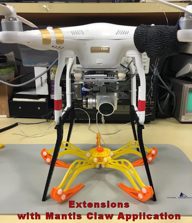 Te średniej wielkości przedłużki nóg są przeznaczone do Phantom 3, ale pasują również do Phantom 1, 2 lub 4. Maksymalna ładowność Phantom 3 wynosi nieco ponad 2 funty (907 gramów).