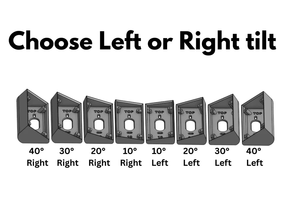 Kąty 10°, 20°, 30° i 40° zapewniają elastyczność dostosowania, co jest szczególnie przydatne podczas instalacji w ciasnych przestrzeniach lub w pobliżu okien. Dzięki przemyślanej konstrukcji ten montaż bez problemu pasuje do modelu Ring, który ma wbudowany akumulator, skośny tył i asymetryczne rozmieszczenie otworów montażowych.