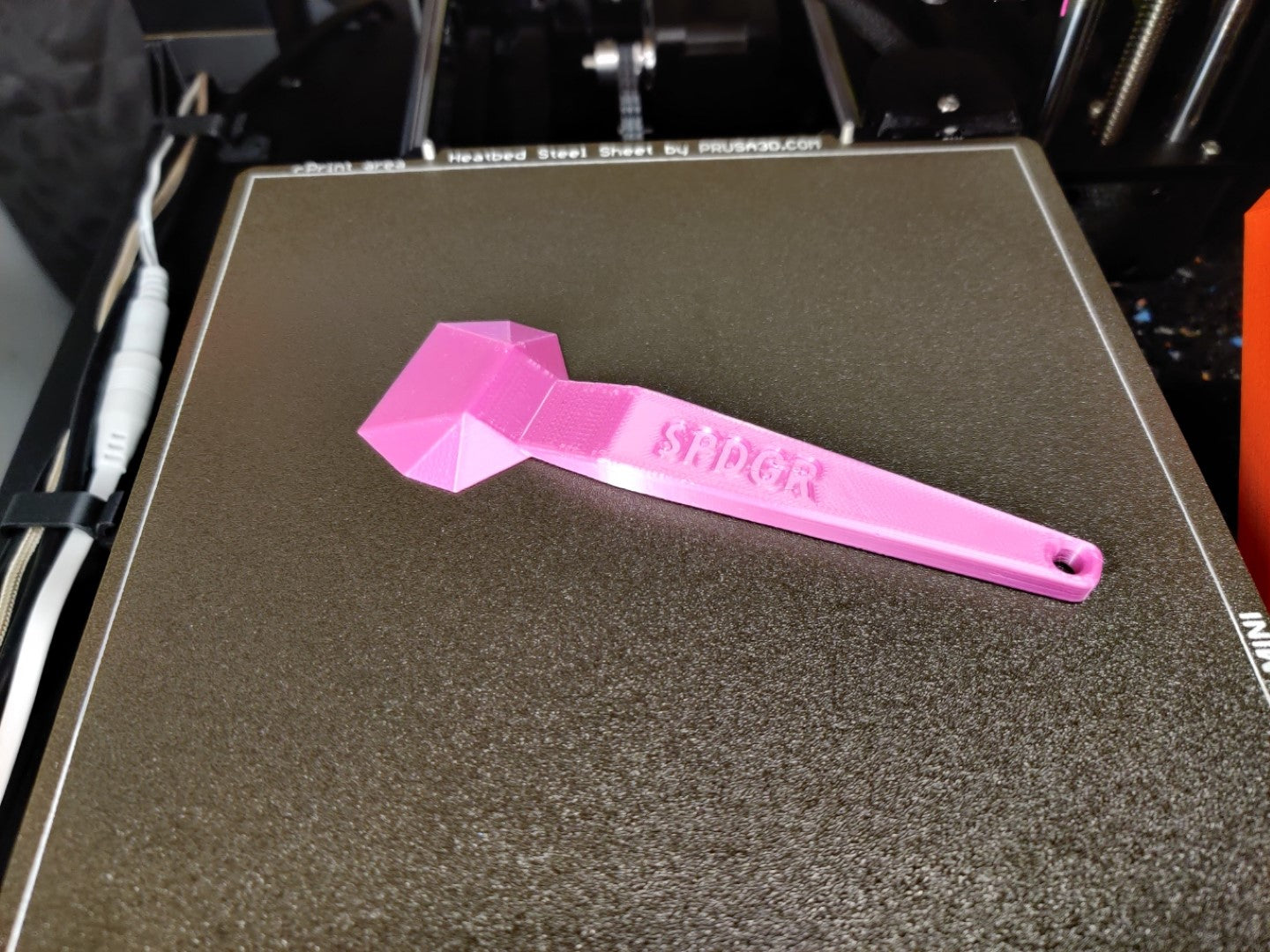 Można go wydrukować na Prusa Mini+ w około 45 minut, używając ustawienia SPEED. Zaleca się drukowanie z prędkością 0,15 mm / 25%, aby uzyskać drobniejsze szczegóły w gradientach i bardziej solidne, solidne wyczucie w dłoni.
