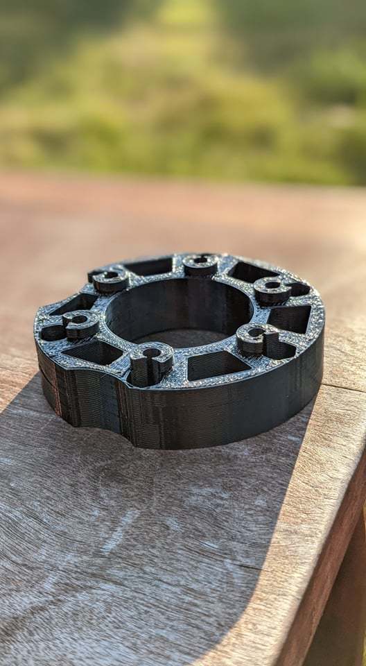 Ten adapter kierownicy G29 został zaprojektowany, aby poprawić wrażenia z symulatora, oferując solidne i niezawodne rozwiązanie do montażu kierownicy. Adapter wykorzystuje nakrętki samohamowne, aby zapewnić solidne mocowanie, eliminując niepewności, które mogą pojawić się w przypadku otworów samogwintujących. Dzięki pogłębionym elementom dystansowym adapter zapewnia, że kierownica jest całkowicie płaska i stabilna we wszystkich sześciu punktach mocowania. Jego konstrukcja obejmuje również strategiczne wycięcia, które przyczyniają się do zmniejszenia wagi bez pogorszenia wytrzymałości. Konstrukcja uwzględnia zachowanie oryginalnych elementów sterujących, dzięki czemu możesz nadal korzystać ze wszystkich funkcji kierownicy Logitech G29. Dla optymalnego montażu zaleca się stosowanie śrub o długości co najmniej 20 mm od kierownicy lub systemu szybkiego zwalniania do nakrętek samohamownych, zwykle M5-.08 x 20 mm.