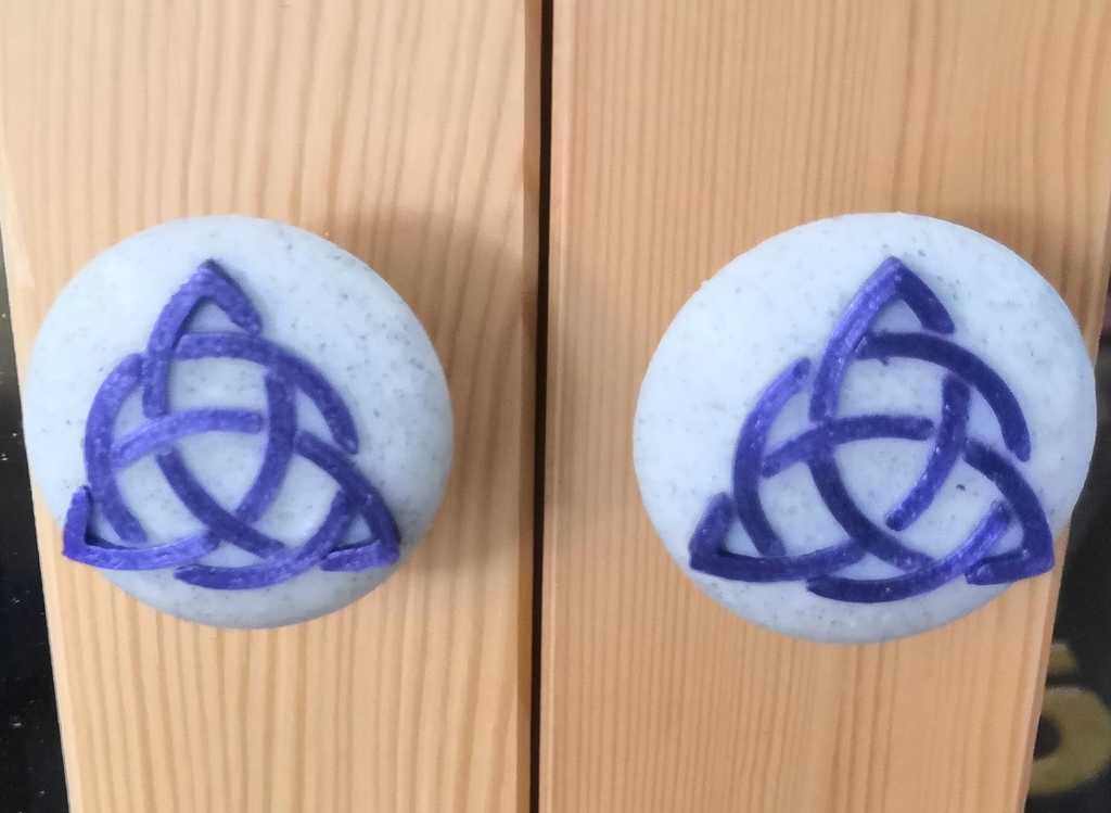 Ta wielokolorowa gałka do szuflad Triquetra została zaprojektowana do użytku ze śrubą M4, dzięki czemu jest mocna i trwała. Uchwyt jest elegancki i estetyczny, zachowując jednocześnie mocne i niezawodne połączenie z szufladą lub drzwiami. Kolorowy wzór Triquetra dodaje unikalnego i atrakcyjnego akcentu. Uchwyt jest łatwy w montażu i zapewnia szybkie i proste ulepszenie każdego mebla.