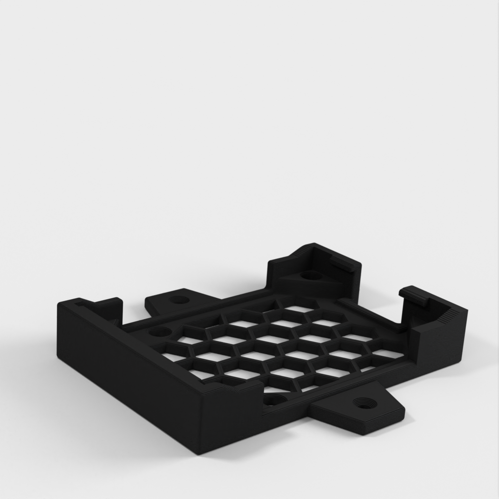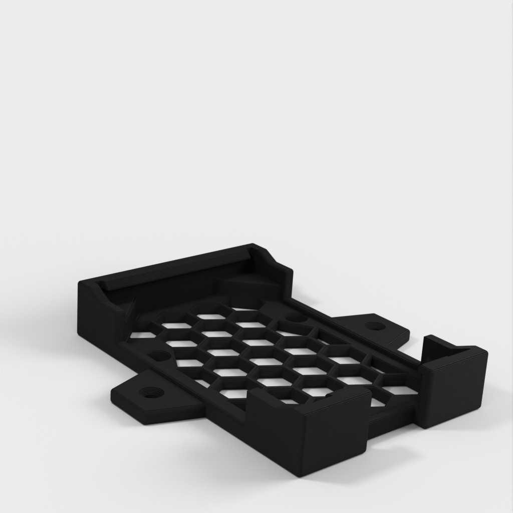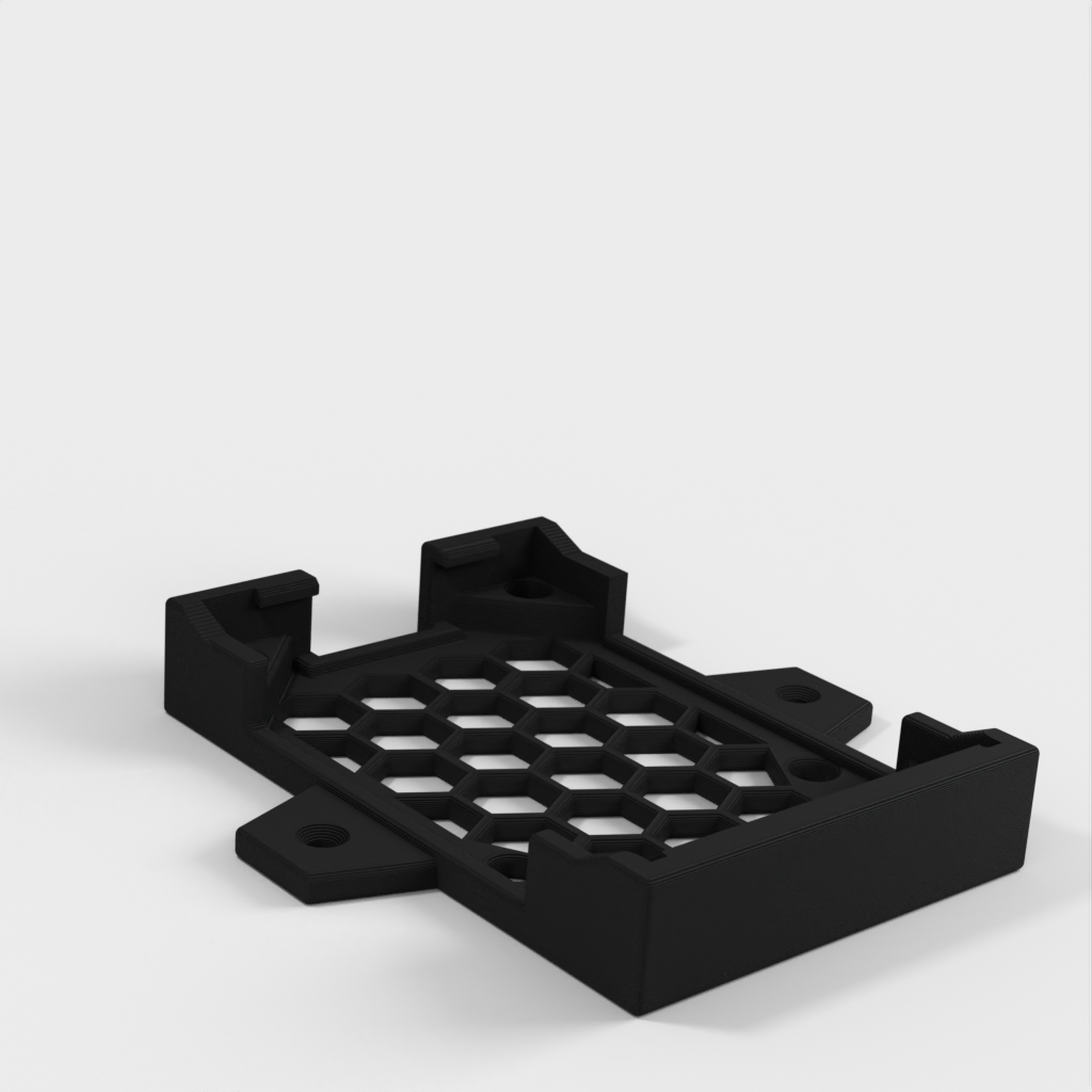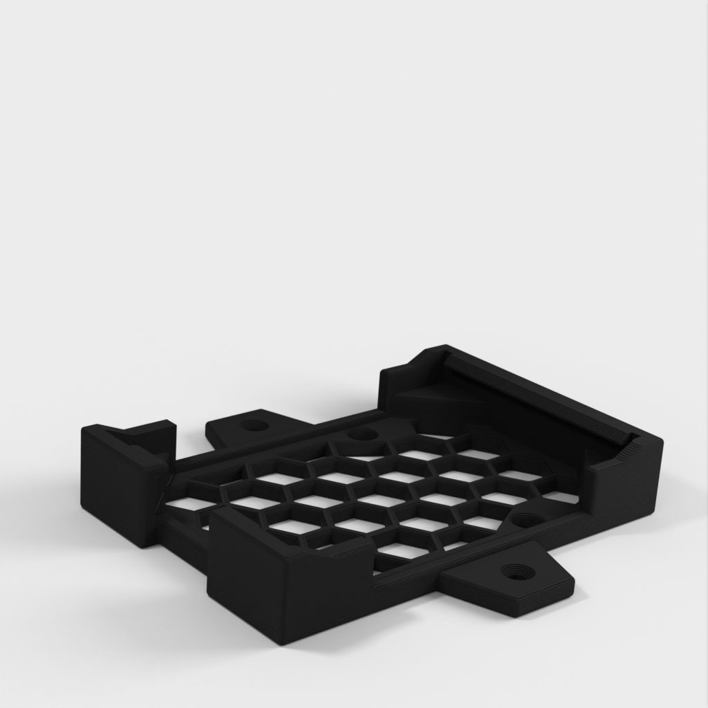 To jest pojedynczy element montażowy do obudowy Geekworm Armor dla Raspberry Pi 4, który umożliwia zamontowanie jej pod biurkiem lub na ścianie. Chociaż obudowa nie ma otworów na kotwy, jak wiele innych, ten uchwyt trzyma ją bardzo pewnie. Otwory na śruby są dostępne, gdy RP4 jest w uchwycie, i można go zdjąć, gdy montaż nie jest na ścianie/biurku, ale byłoby to trudne, gdy jest zamontowany. Wewnątrz uchwytu znajduje się mały otwór zapewniający przepływ powietrza/chłodzenie pod pi, co powinno sprawić, że będzie chłodniejszy niż po prostu położeniu go na biurku.