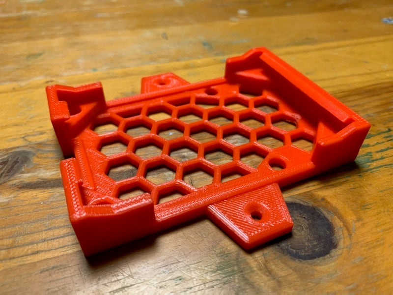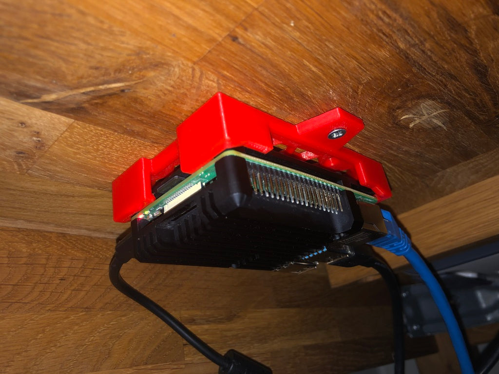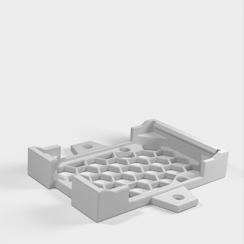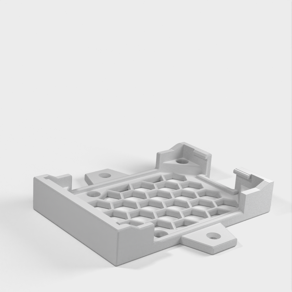 To jest pojedynczy element montażowy do obudowy Geekworm Armor dla Raspberry Pi 4, który umożliwia zamontowanie jej pod biurkiem lub na ścianie. Chociaż obudowa nie ma otworów na kotwy, jak wiele innych, ten uchwyt trzyma ją bardzo pewnie. Otwory na śruby są dostępne, gdy RP4 jest w uchwycie, i można go zdjąć, gdy montaż nie jest na ścianie/biurku, ale byłoby to trudne, gdy jest zamontowany. Wewnątrz uchwytu znajduje się mały otwór zapewniający przepływ powietrza/chłodzenie pod pi, co powinno sprawić, że będzie chłodniejszy niż po prostu położeniu go na biurku.
