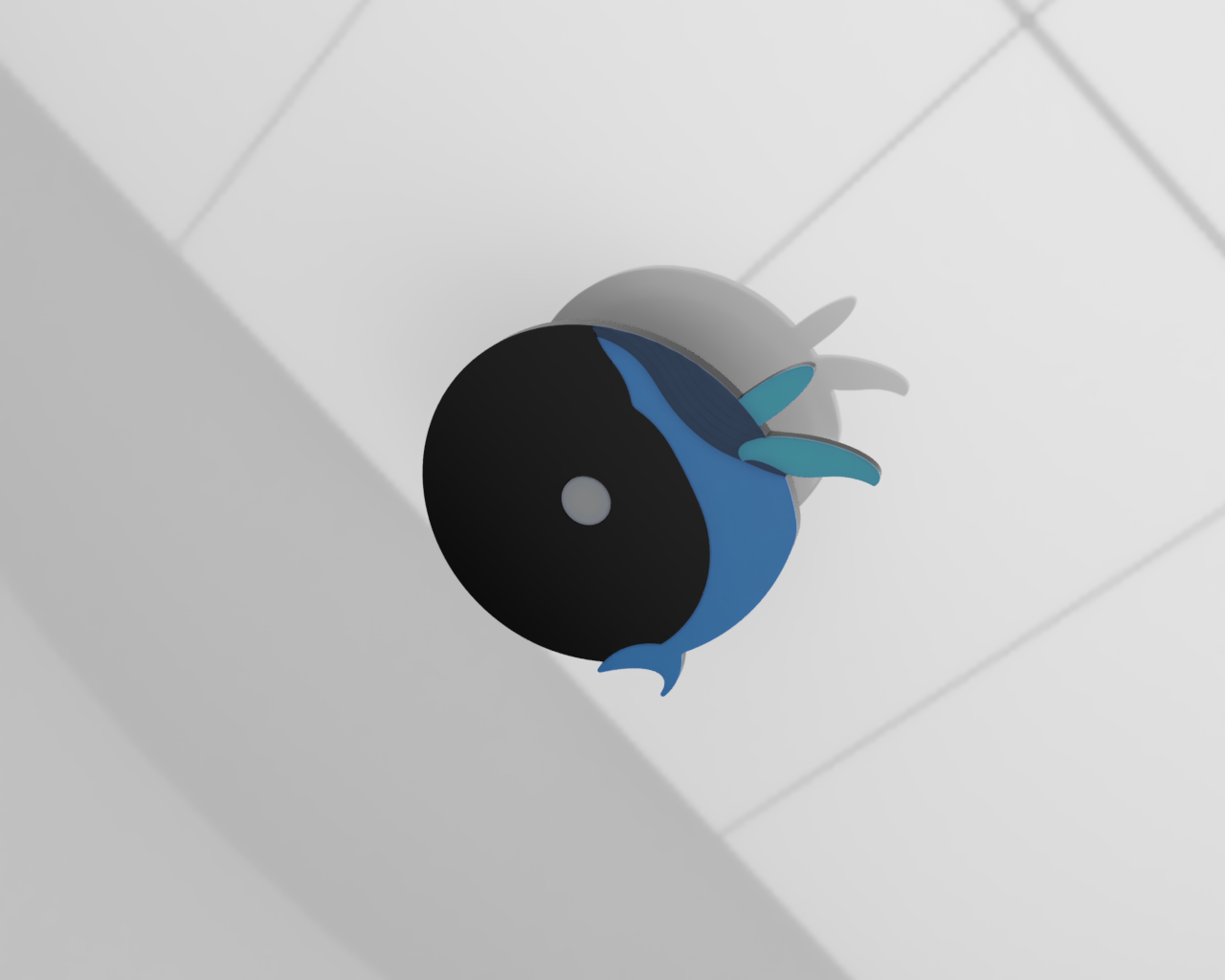 Hak ścienny w kształcie wieloryba. Obracając haczyk można wyobrazić sobie wieloryba skaczącego lub nurkującego. Idealny do każdego miejsca w domu, w którym potrzebujesz trochę dodatkowego miejsca do przechowywania.