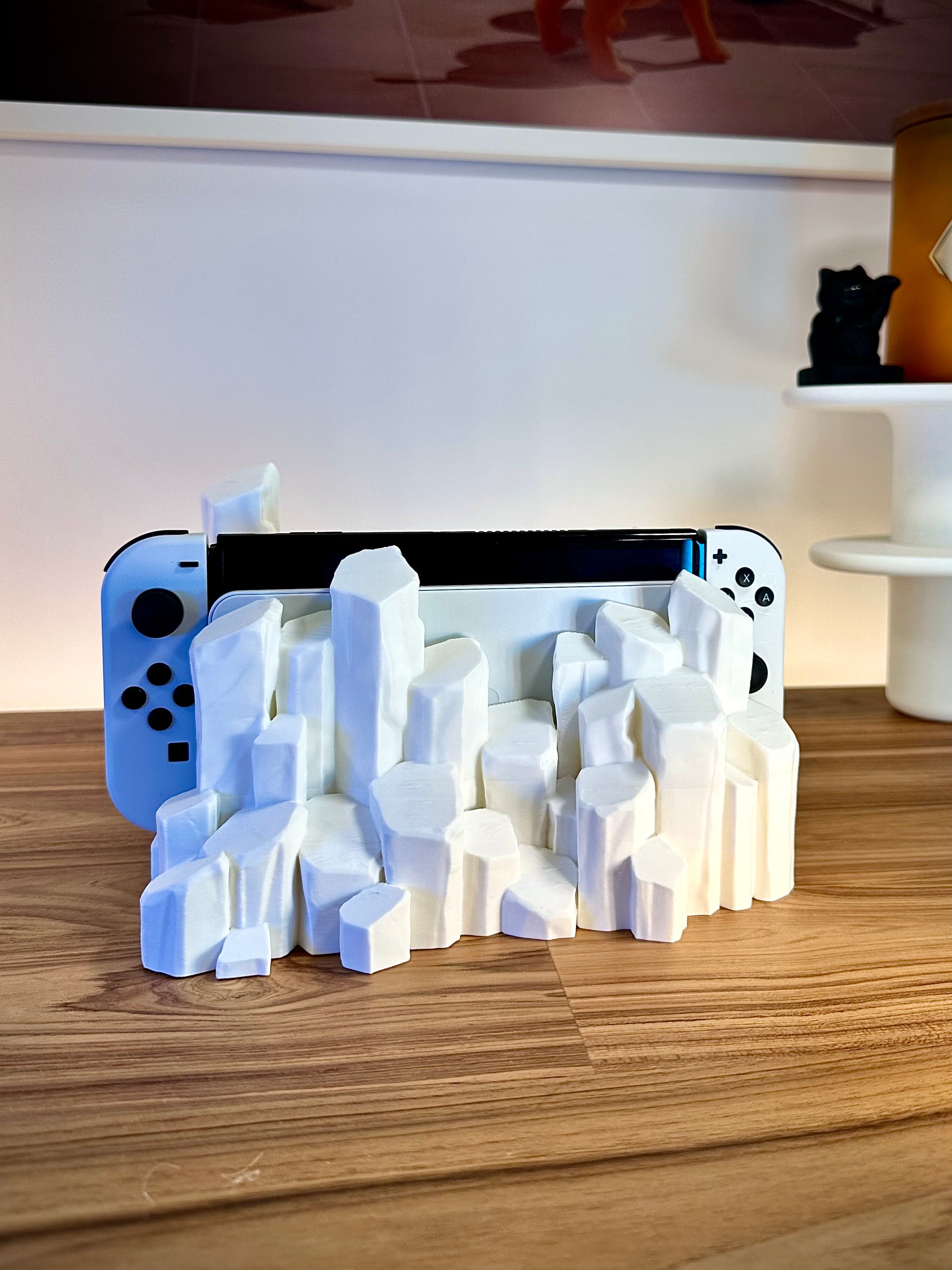 Ten dok, inspirowany eleganckimi formacjami kwarcu, stanowi stylową i funkcjonalną podstawkę dla Twojego Nintendo Switch lub Switch OLED. Konstrukcja zapewnia pełny dostęp do wszystkich portów i utrzymuje optymalną, niezakłóconą wentylację z tyłu podczas gry. Dodaj wyjątkowy, inspirowany kryształami akcent do swojej strefy gier.