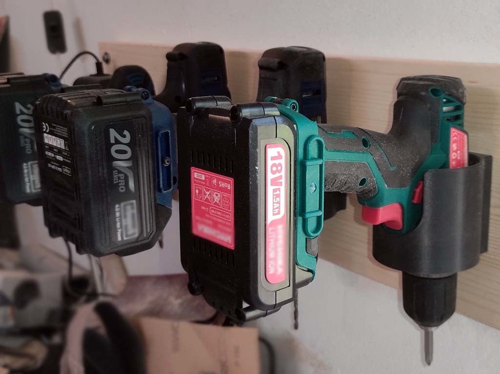 Ten uchwyt ścienny do elektronarzędzi/wiertarki jest prosty i łatwy do wydrukowania. Został zaprojektowany tak, aby pasował do praktycznie każdego rozmiaru lub marki narzędzia i umożliwia przechowywanie narzędzi bez konieczności wyjmowania głowic wiertarskich.