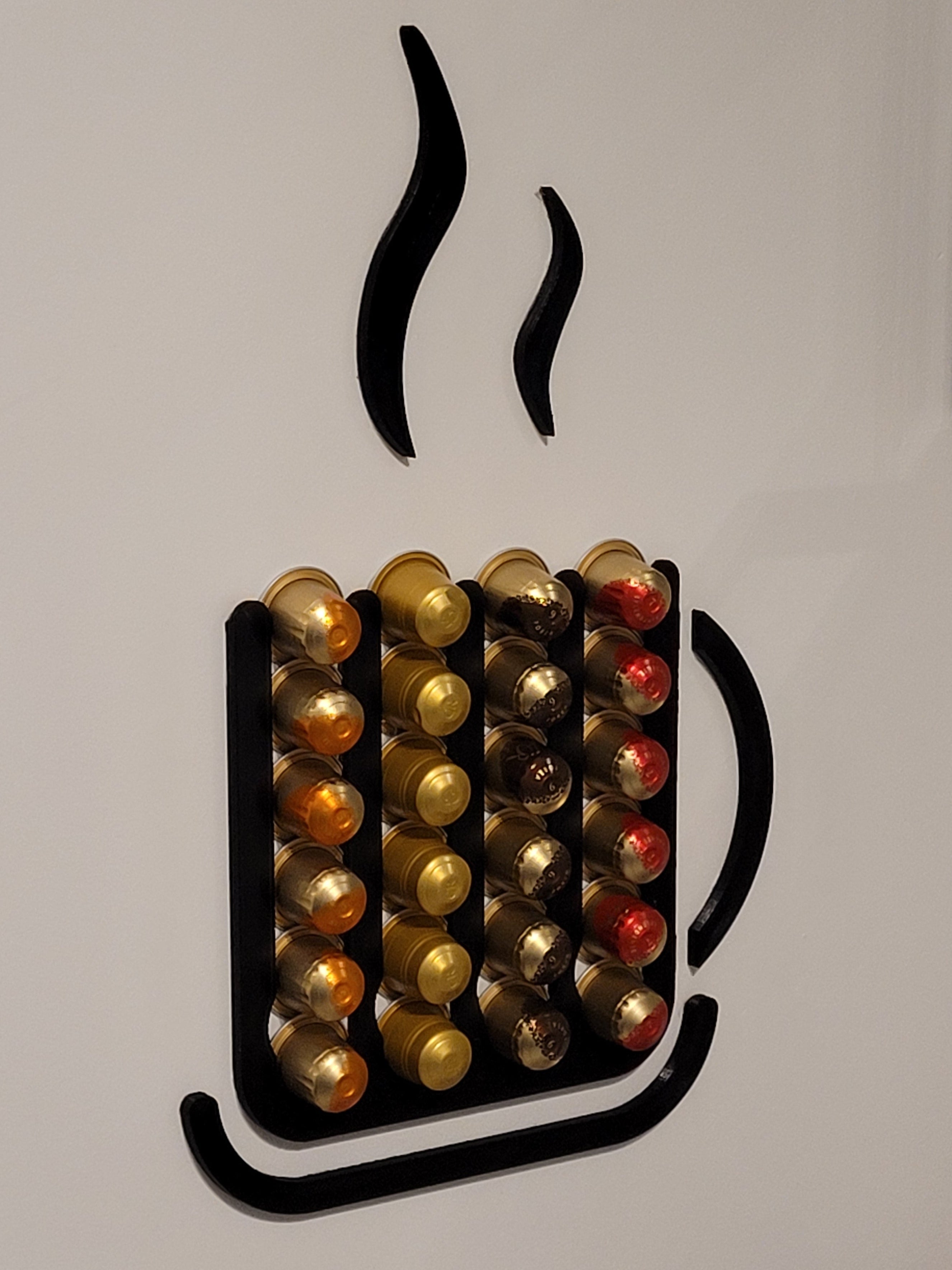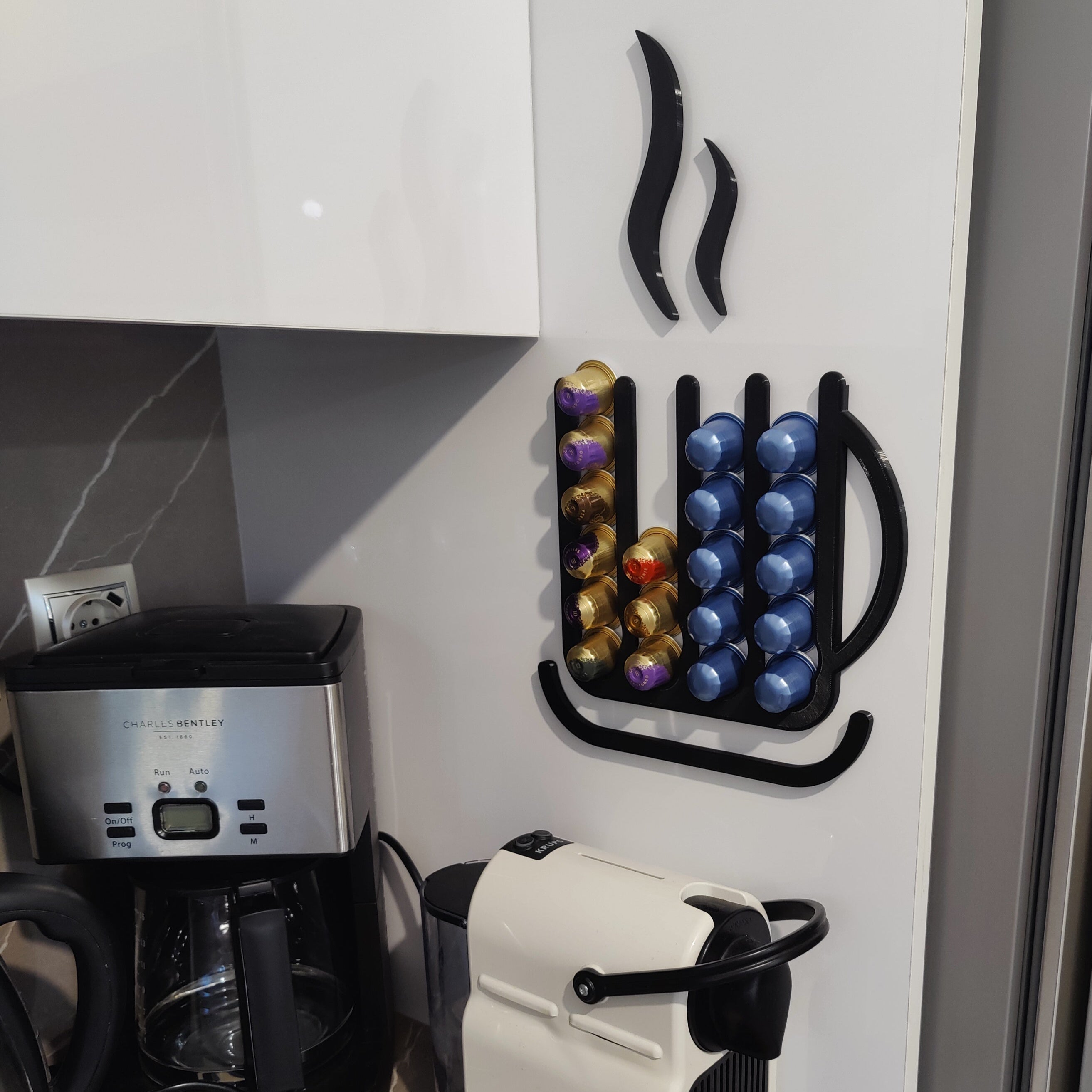 Montowany na ścianie uchwyt na kapsułki Nespresso w kształcie filiżanki (4 części)