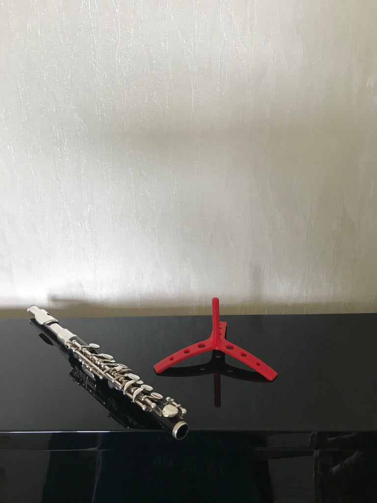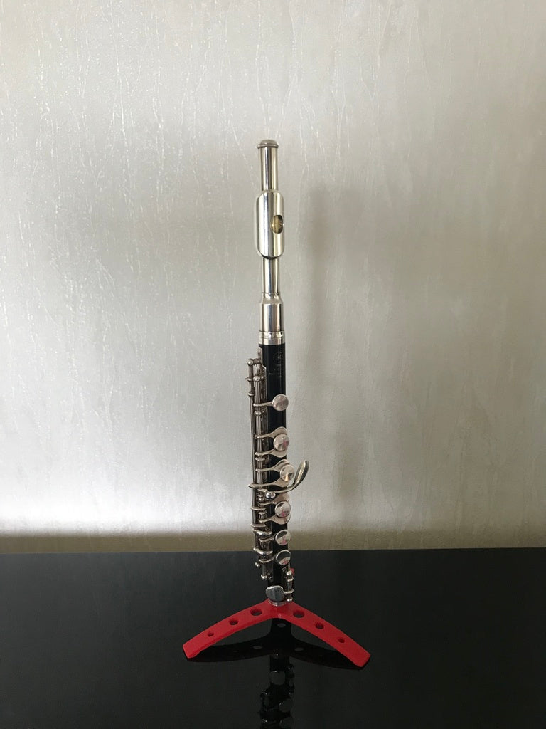To jest statyw piccolo, który jest bardzo niezawodny dla zwiększenia bezpieczeństwa. Piccolo można łatwo umieścić w statywie, co zapewnia bardziej zorganizowane i bezpieczne przechowywanie sprzętu muzycznego.