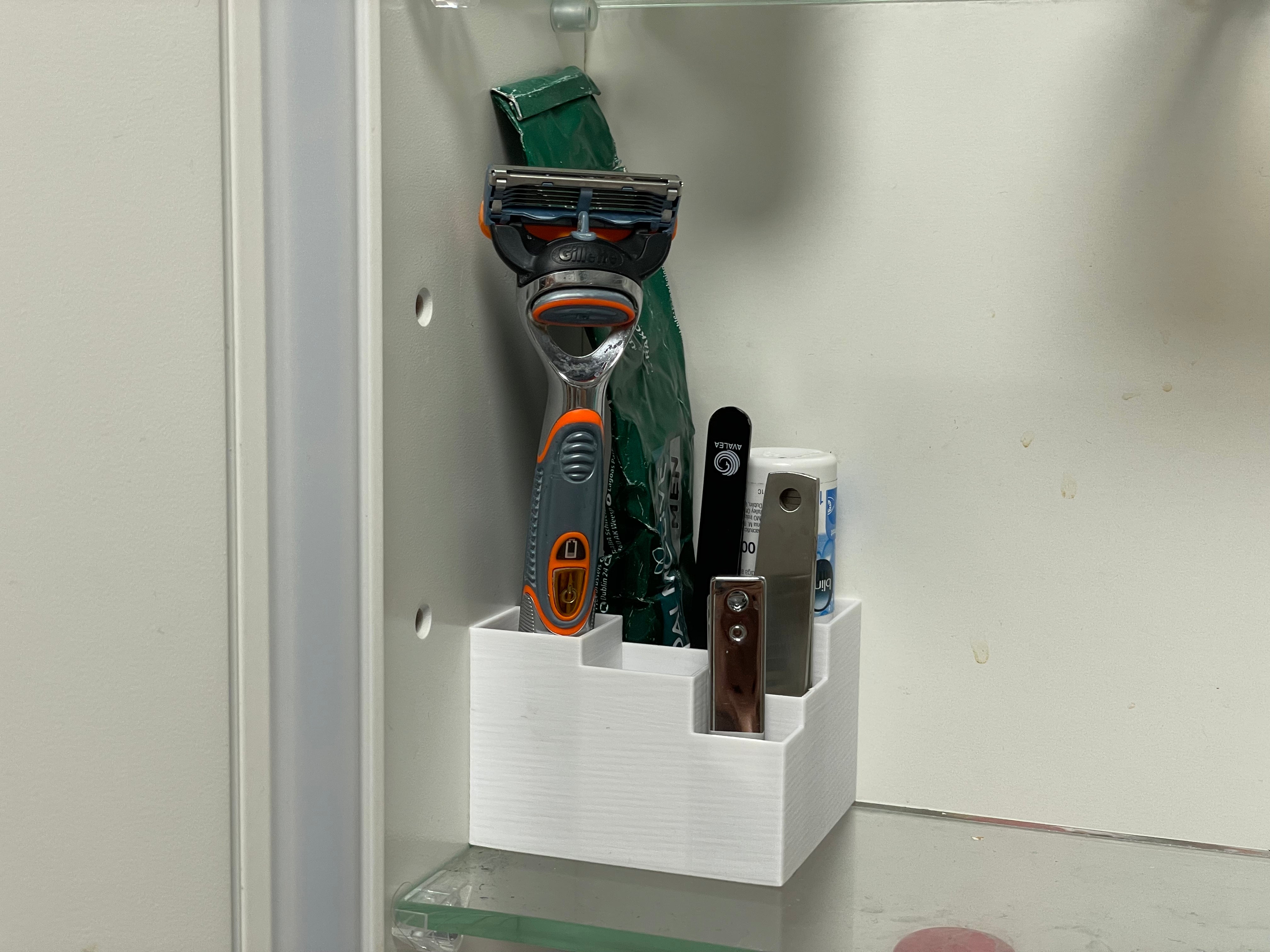 Organizer do szafki łazienkowej, który idealnie nadaje się do organizowania przyborów toaletowych, kosmetyków do makijażu i innych drobnych przedmiotów. Łatwy do zamontowania na ścianie łazienki i może być używany do utrzymania porządku i wolnych powierzchni.