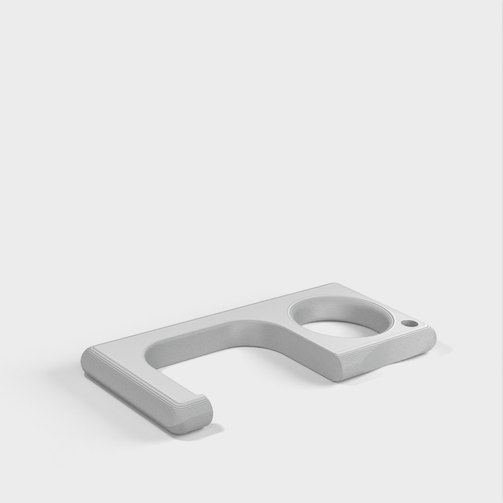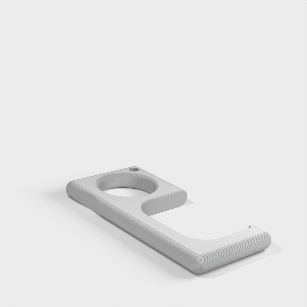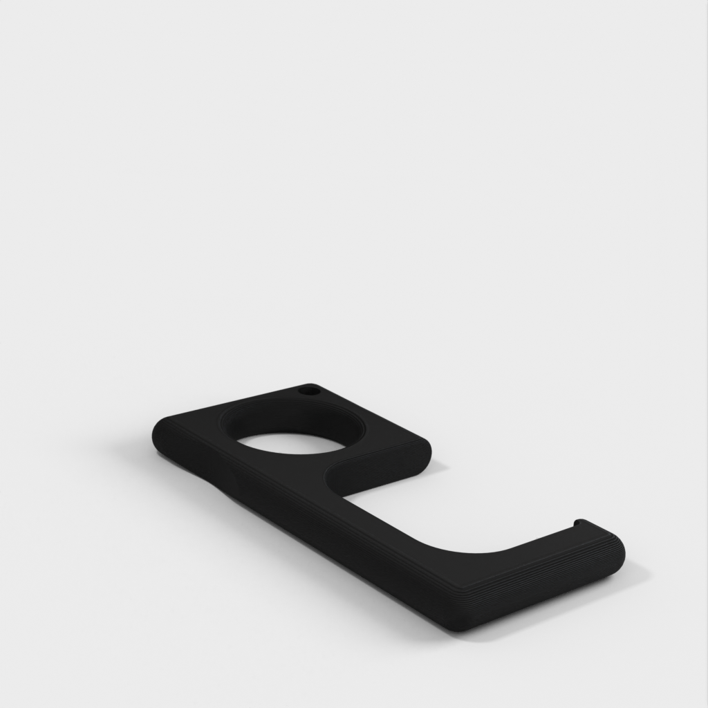 Prosty ściągacz do drzwi, który można łatwo przymocować do breloka. Działa z większością klamek. Może jednak złamać się przy ciężkich drzwiach, zwykle w budynkach przemysłowych lub niektórych budynkach komercyjnych.