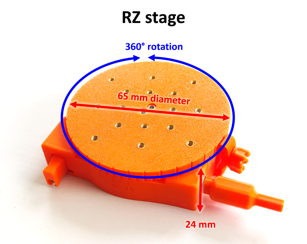 Użyj tej platformy obrotowej w swoich eksperymentach lub projektach, aby uzyskać przesunięcia o doskonałej wydajności. Projekt platformy można połączyć z różnymi silnikami liniowymi i mikromanipulatorami, co umożliwia łatwą integrację w złożonych systemach.