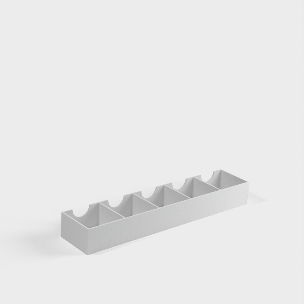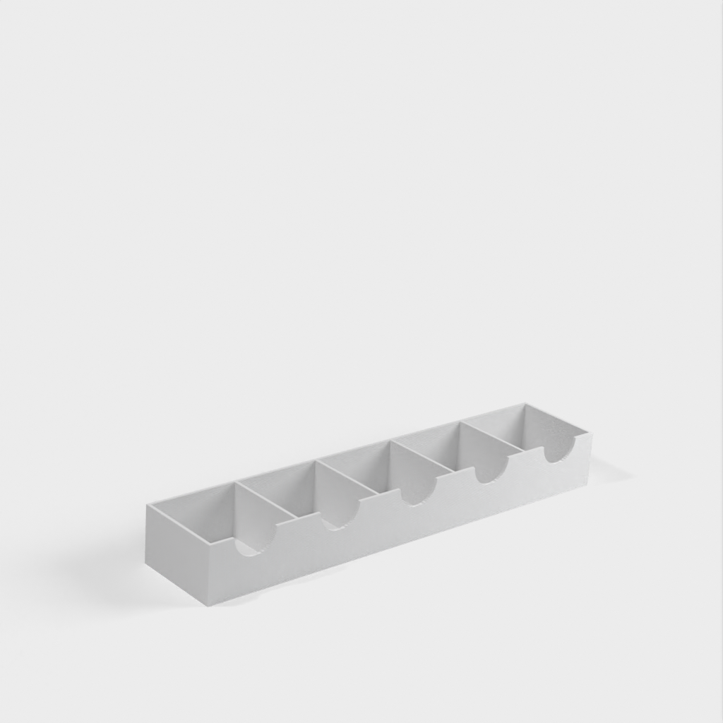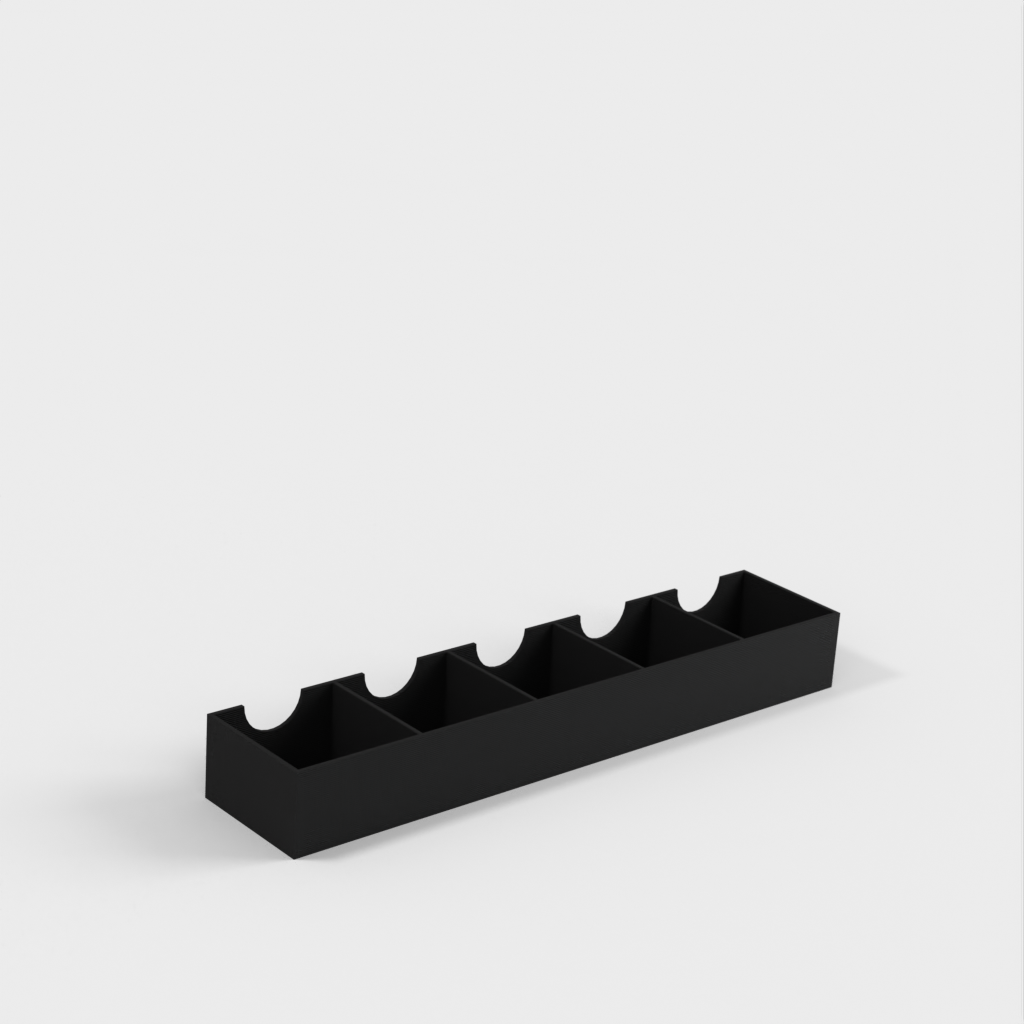 Uchwyt ten można łatwo zamontować na drzwiach szafki za pomocą dwustronnej taśmy, aby zapewnić łatwe i wygodne przechowywanie. Można go dostosować do konkretnych potrzeb za pomocą OpenSCAD i może pomieścić kwadratowe butelki o średnicy 45 mm.