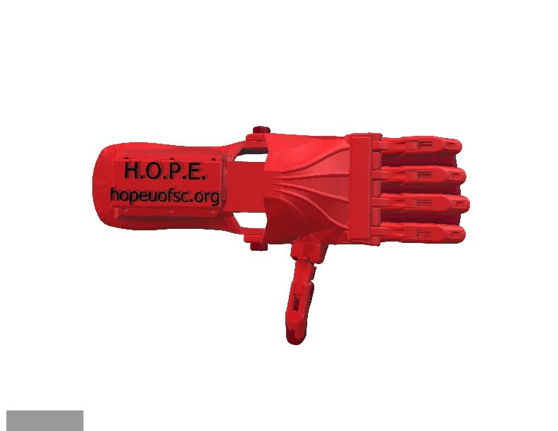 Jesteśmy organizacją studencką zajmującą się dostarczaniem darmowych protez rąk dla wszystkich dzieci poprzez tworzenie 3D. Jesteśmy dobrowolną organizacją non-profit, która finansuje zarówno nasze bezpłatne usługi, jak i badania i rozwój w celu ich ulepszenia. Wszystkie napiwki są przeznaczane na naszą pracę i można się o nie ubiegać. Odwiedź www.hopeuofsc.org, aby uzyskać więcej informacji lub wnieść swój wkład.