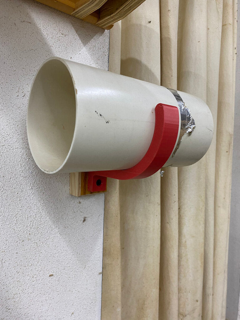 Ten wieszak na rury PVC został zaprojektowany do bezpiecznego mocowania rury odkurzacza o średnicy 4 cali (ok. 10 cm) lub podobnej rury do ściany. Konstrukcja zapewnia dopasowanie, które utrzymuje rurę stabilnie, bez zbyt mocnego zaciskania, co umożliwia łatwe wkładanie i wyjmowanie. Wieszak przyczynia się do zorganizowanego przechowywania rur, szczególnie w warsztatach lub podobnych środowiskach, gdzie pożądana jest optymalizacja przestrzeni.