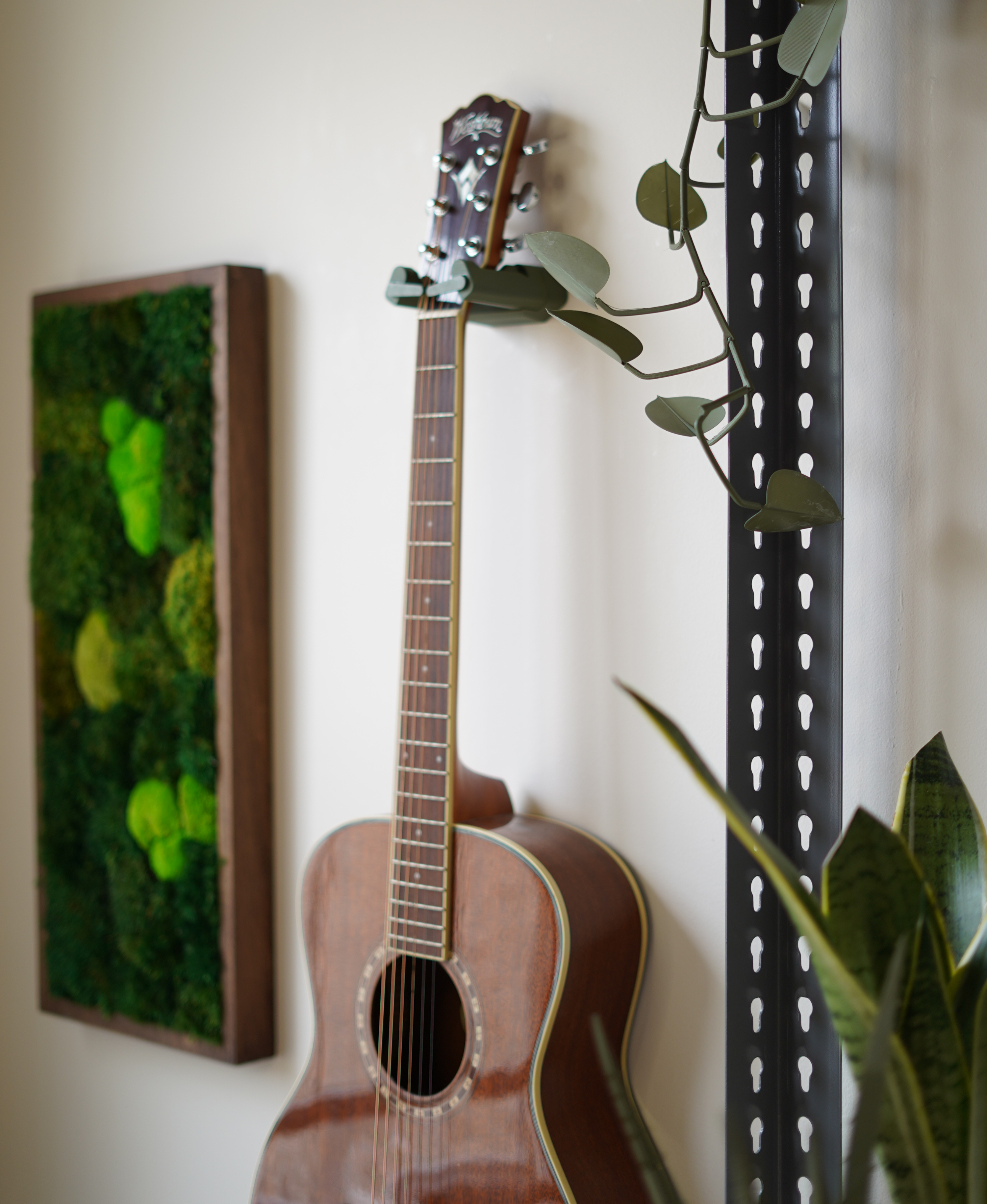 • Elastyczne rozwiązanie, które pasuje do różnych pomieszczeń jako ścienny uchwyt na gitarę.