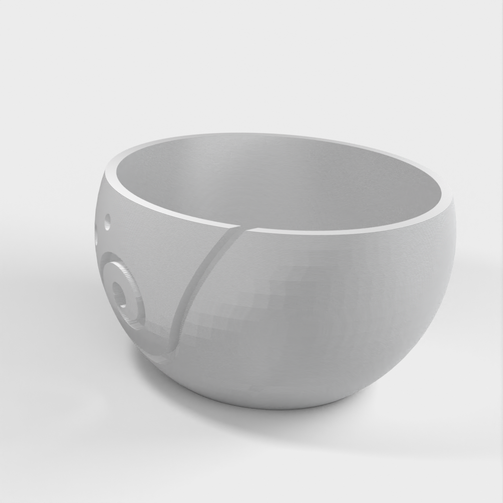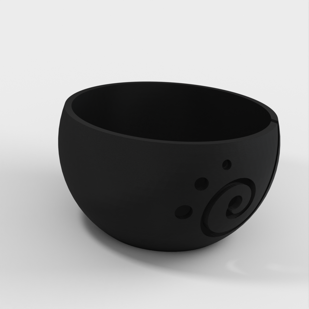 Miska na włóczkę, która została zaprojektowana, aby trzymać włóczkę i dostarczać nić podczas robienia na drutach lub szydełkowania. Posiada dekoracyjny spiralny wzór, z którego wychodzi nić.