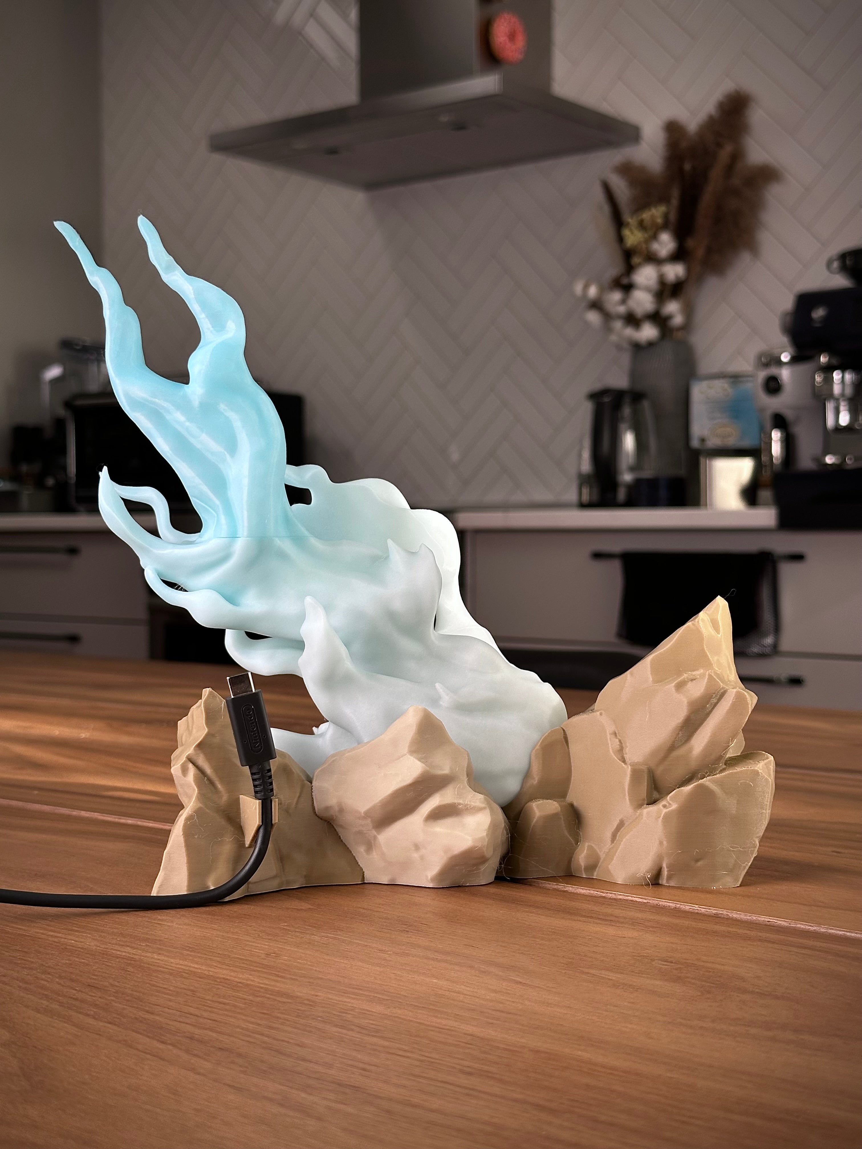 Ta stacja dokująca została zaprojektowana tak, aby stylowo eksponować i ładować konsolę Nintendo Switch Lite. Unikalna podstawa w kształcie kuli ognia i skały tworzy przyciągający wzrok projekt. Stacja dokująca zapewnia stabilne ustawienie i posiada inteligentne zarządzanie kablami. Idealna dla fanów, którzy chcą mieć wyjątkową stację ładowania.