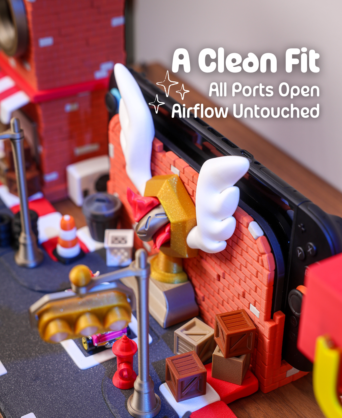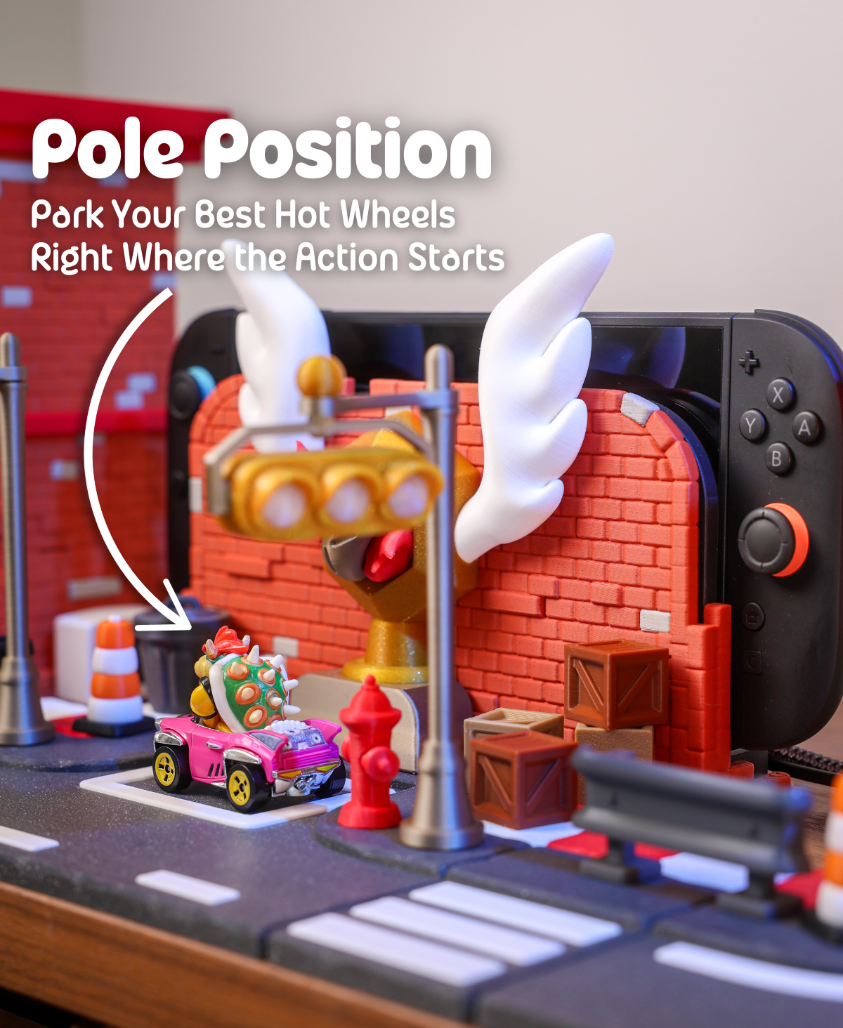 Ta stacja dokująca Podium Pit Stop została zaprojektowana dla Twojej konsoli Nintendo Switch 2 i łączy funkcjonalność z unikalnym, inspirowanym wyścigami designem z kolekcji Turbo District. Zapewnia pełny dostęp do wszystkich portów i wentylacji. Model jest łatwy w montażu bez użycia kleju i może służyć również jako stylowa podstawka.