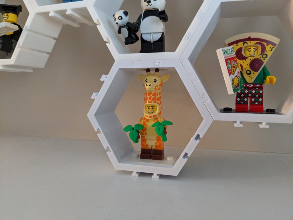 Zaprezentuj swoje minifigurki ze stylem za pomocą tego unikalnego, sześciokątnego systemu wystawienniczego. Każda komórka została zaprojektowana tak, aby pomieścić minifigurkę z podstawą 4x3, co zapewnia idealne dopasowanie i opływową estetykę. System jest wszechstronny i można go dostosować do różnych stylów.