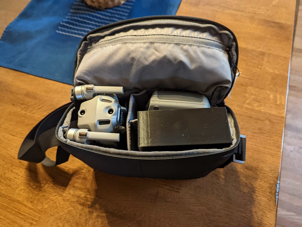 Ta praktyczna taca na akcesoria została zaprojektowana, aby zapewnić zorganizowane rozwiązanie do przechowywania sprzętu DJI Air 2 Fly More Combo. Taca może pomieścić do trzech akumulatorów, filtry i pojedynczą ładowarkę, dzięki czemu możesz łatwo śledzić swój niezbędny sprzęt. Wraz z niedawną aktualizacją dodano również miejsce na dodatkową komorę baterii, w której można przechowywać adapter SD i czytnik kart SD USB-C, co optymalizuje przepływ pracy podczas przesyłania danych. Przemyślana konstrukcja zapewnia, że zarówno taca, jak i jej pokrywa bezproblemowo mieszczą się w torbie podróżnej, dzięki czemu transport i dostęp do sprzętu są proste i wydajne.