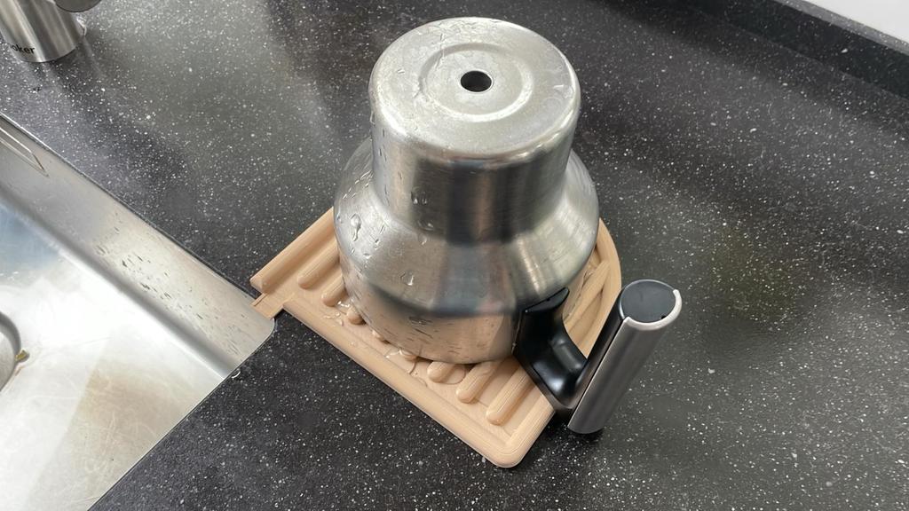 Wykonana z elastycznego materiału TPU ociekaczka zapewnia, że krople wody pozostają na powierzchni dzięki właściwościom materiału i wysokiemu napięciu powierzchniowemu. Płaska powierzchnia maksymalizuje skuteczność zbierania i jest zaprojektowana tak, aby większe ilości płynu mogły być stopniowo odprowadzane, np. do zlewu kuchennego. Stanowi to bezproblemowe rozwiązanie minimalizujące ilość odpadów i utrzymujące porządek, co czyni go cennym akcesorium Quick Mill.