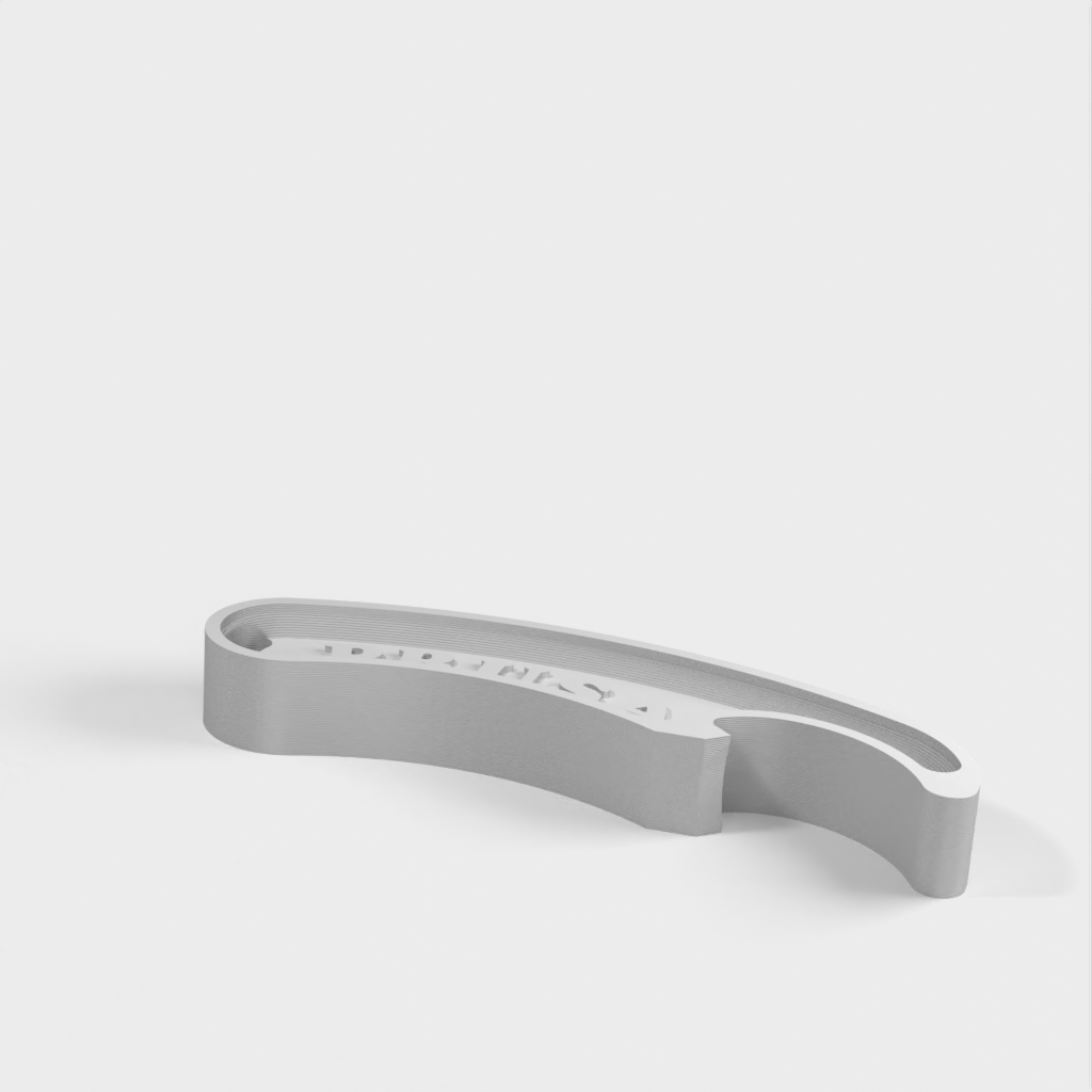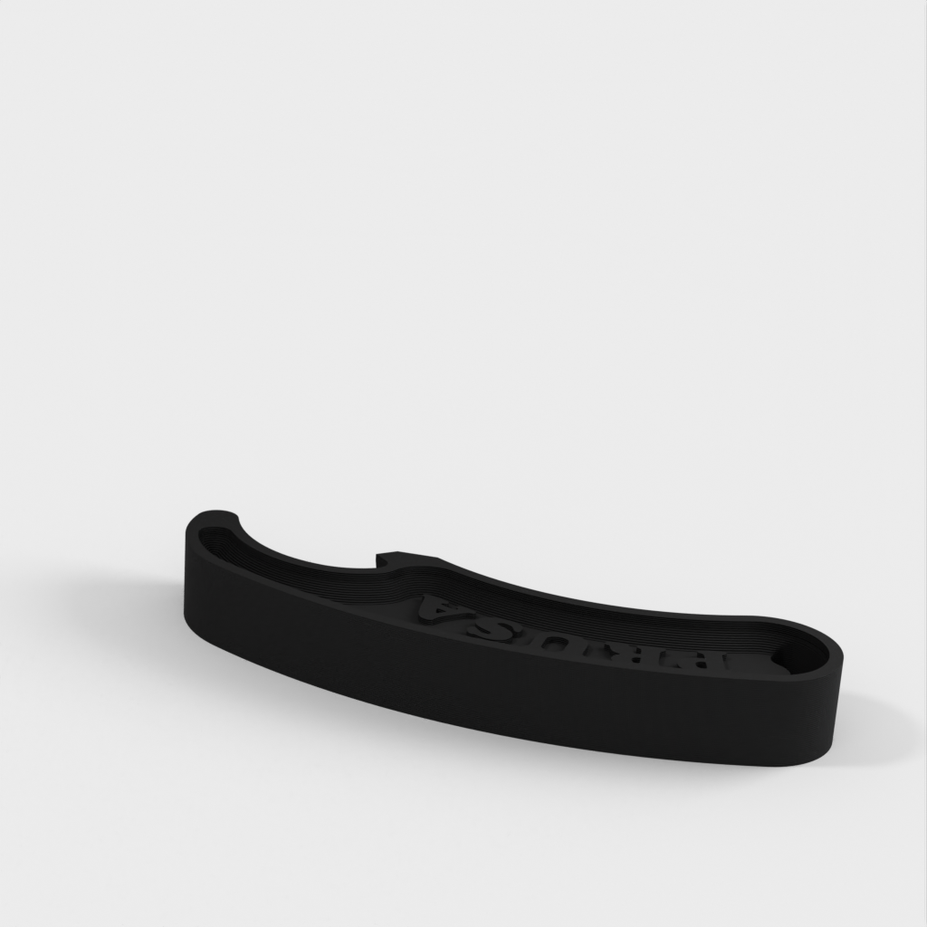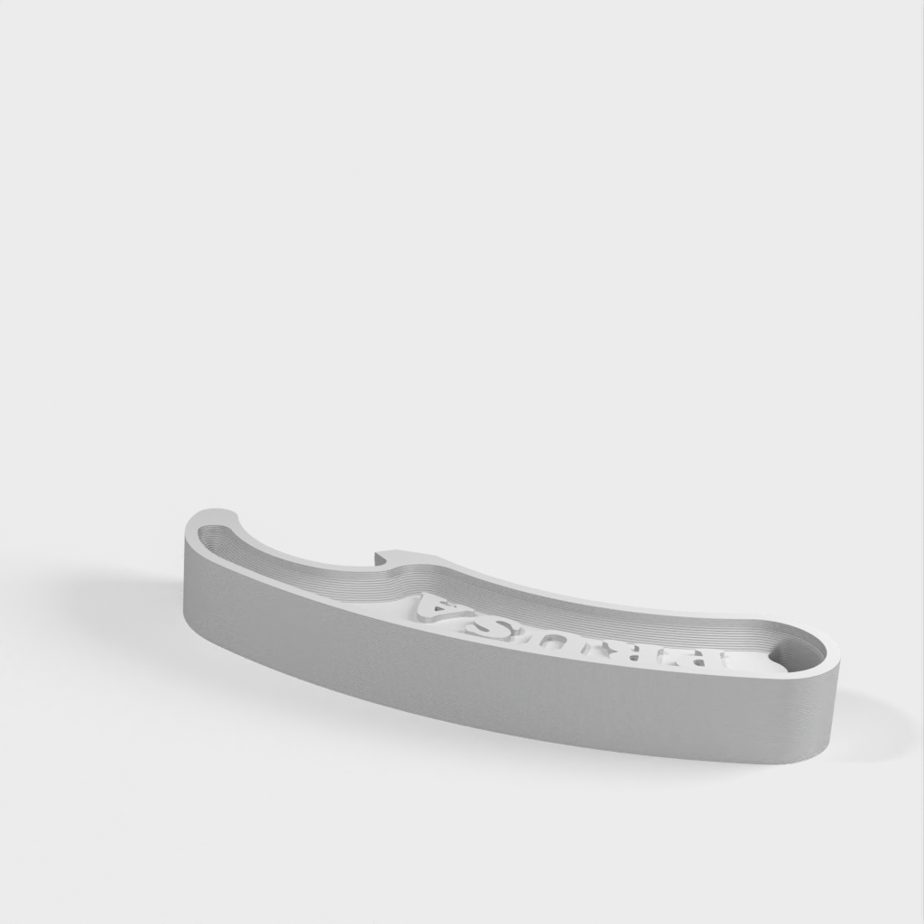Możliwe jest dodanie niestandardowego imienia w celu spersonalizowania otwieracza do butelek. Otwieracz przechwytuje ostre krawędzie kapsla, a lekko zakrzywiona powierzchnia styku otwieracza pozwala na większy kontakt z powierzchnią w celu usunięcia kapsla i zmniejszenia uszkodzeń plastikowego otwieracza.
