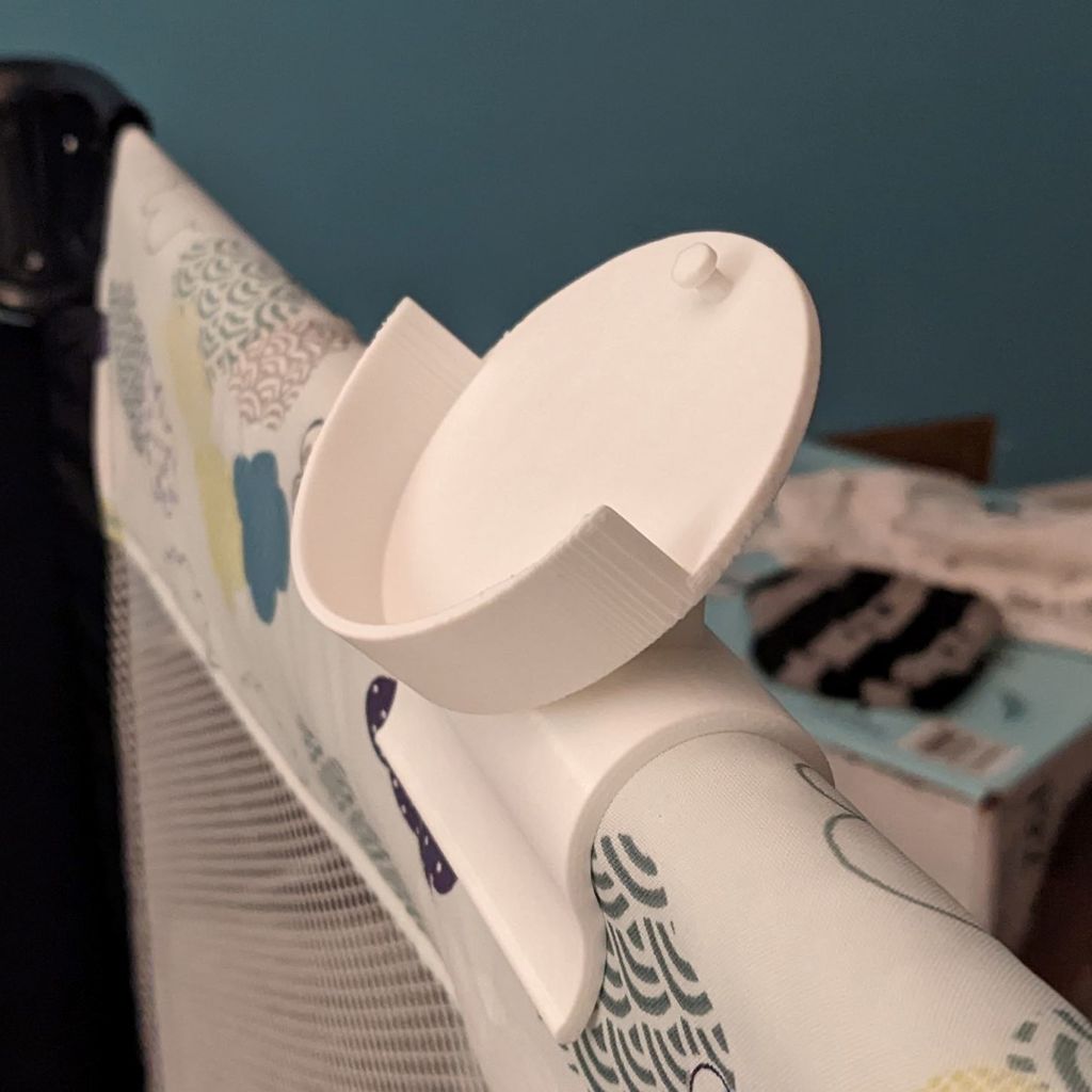 - Bezpieczny montaż niani elektronicznej na Pack-n-Play i łóżeczkach dziecięcych.