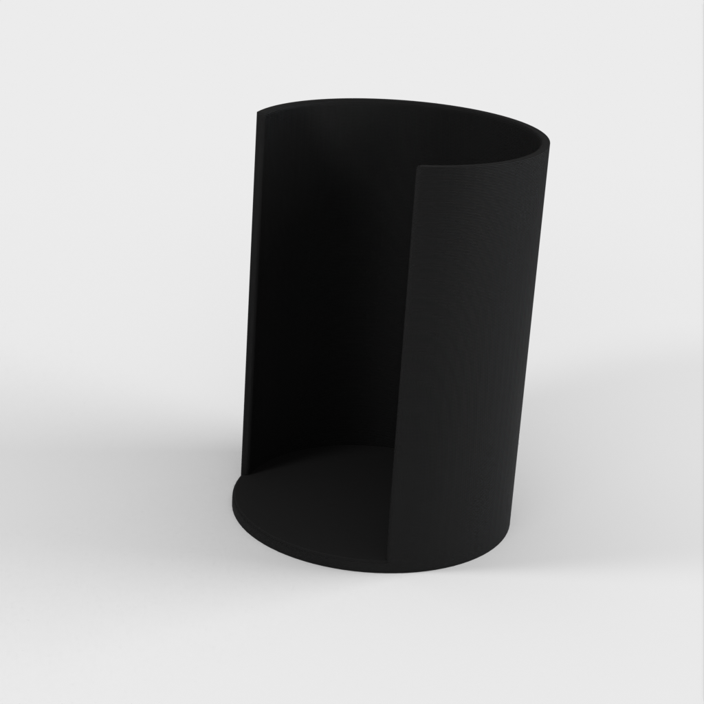 Uchwyt na filtr Aeropress (wysoki), z miejscem na dwa kompletne pakiety filtrów jednocześnie. Ma cieńsze ścianki i podłogę, aby przyspieszyć drukowanie. Odpowiednie wymiary to średnica wewnętrzna 66 mm z wycięciem w kształcie łuku 110 stopni. Filtr z podwójnym stosem ma około 90 mm, jest nieco wyższy, aby zapewnić miejsce na tłok.