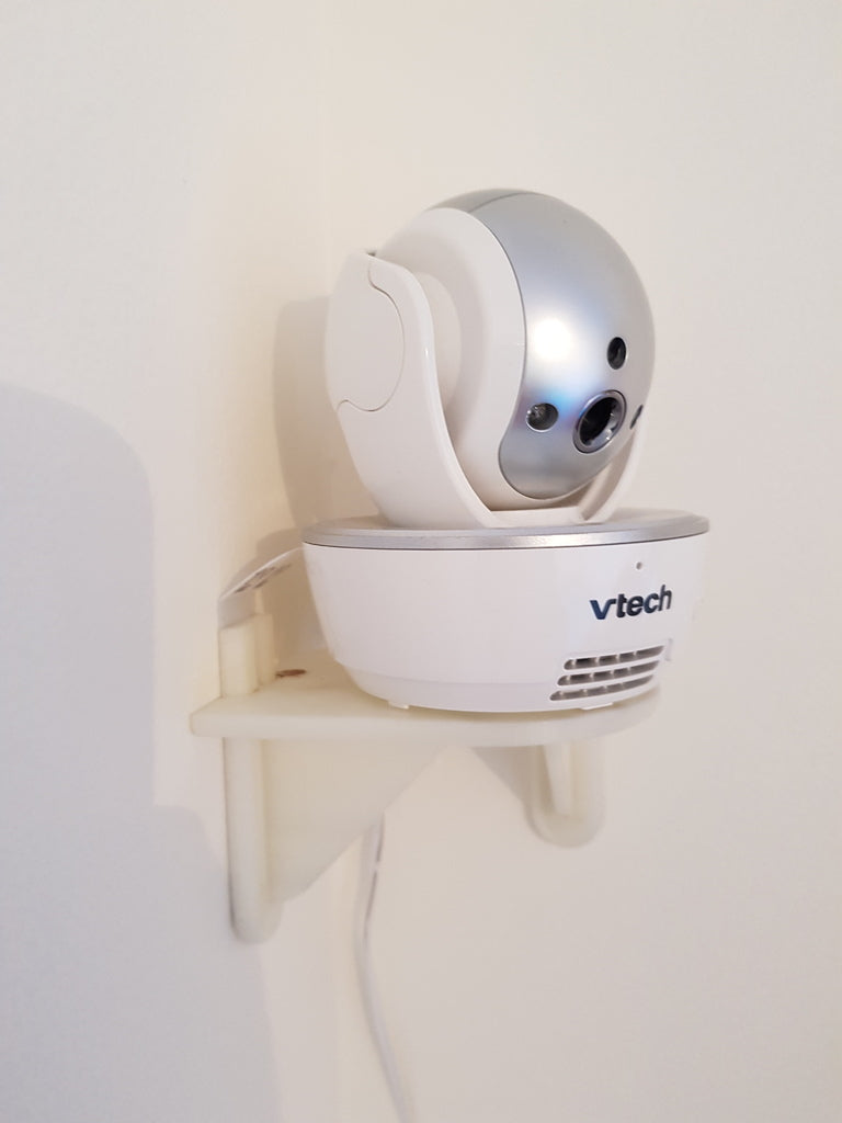 Ten uchwyt do kamery został zaprojektowany, aby zapewnić stabilne i bezpieczne umieszczenie kamery niani elektronicznej VTech. Został on specjalnie opracowany, aby można go było dyskretnie zamontować w rogu pokoju, co pomaga uzyskać optymalny kąt widzenia do monitorowania dziecka. Instalacja jest prosta; uchwyt można łatwo przymocować do ściany za pomocą pasków samoprzylepnych 3M. Zapewnia to niezawodną konfigurację bez zajmowania miejsca na podłodze lub wymagania trwałych mocowań, co czyni go praktycznym rozwiązaniem dla rodziców, którzy chcą skutecznego i oszczędzającego miejsce sposobu na obserwowanie swojego dziecka.