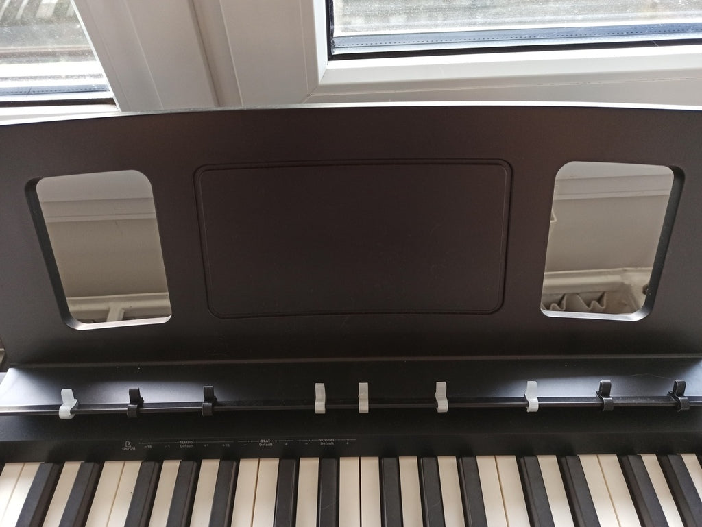 Solidny i niezawodny uchwyt zaprojektowany specjalnie dla obudowy pianina cyfrowego Roland FP-10. Pulpit nutowy zapewnia, że Twoje nuty pozostaną bezpiecznie na miejscu podczas gry, co ułatwia śledzenie muzyki i grę bez wysiłku. Jest łatwy w montażu i kompatybilny ze wszystkimi standardowymi zestawami nut pojedynczych oraz nutami w książkach.