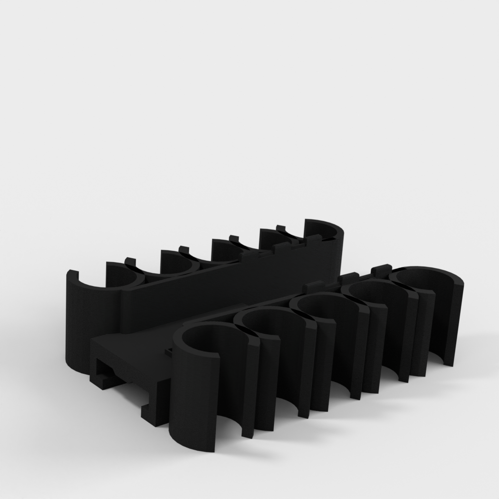 Ten uchwyt na strzałki Nerf 5x2 V1 można przymocować do szyny taktycznej, co umożliwia przenoszenie 10 strzałek. Jest to szczególnie przydatne, aby utrzymać porządek w grze i upewnić się, że zawsze masz pod ręką amunicję.
