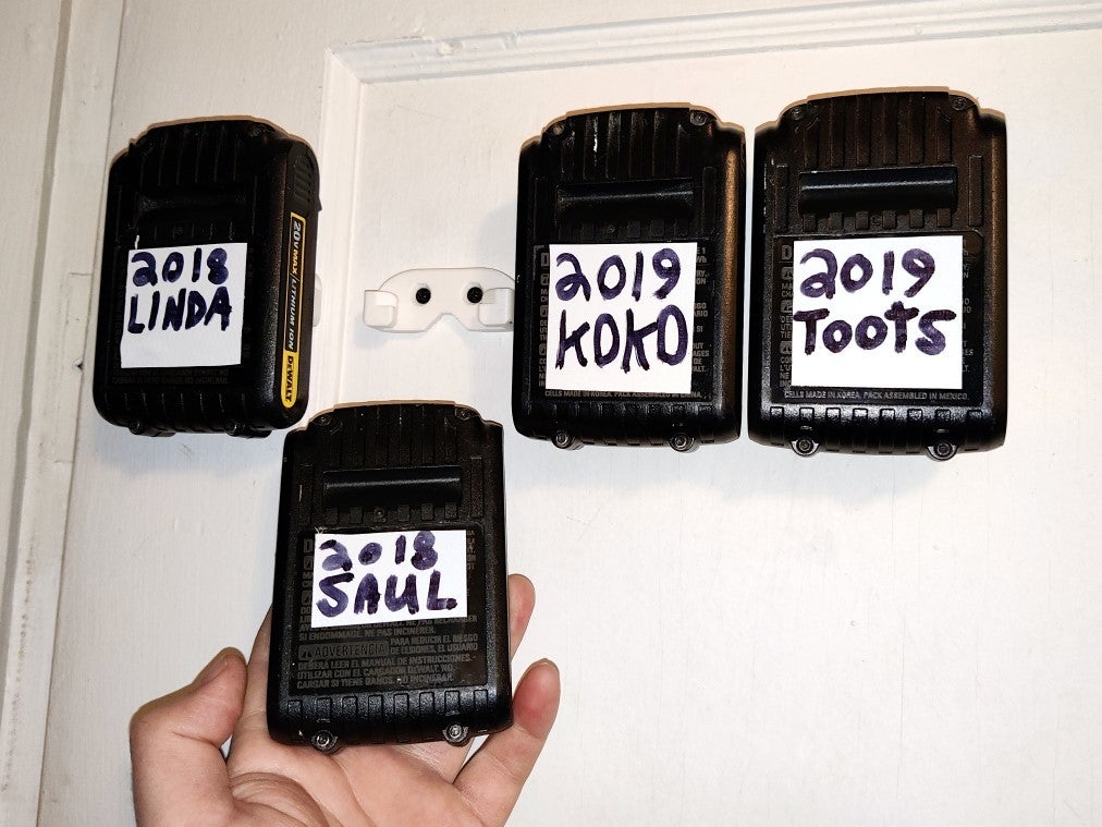 Jest to minimalistyczny uchwyt ścienny do akumulatorów litowo-jonowych Dewalt 20 V. Można go łatwo zamontować na ścianie za pomocą dwóch śrub 1/2' #8 z łbem stożkowym.