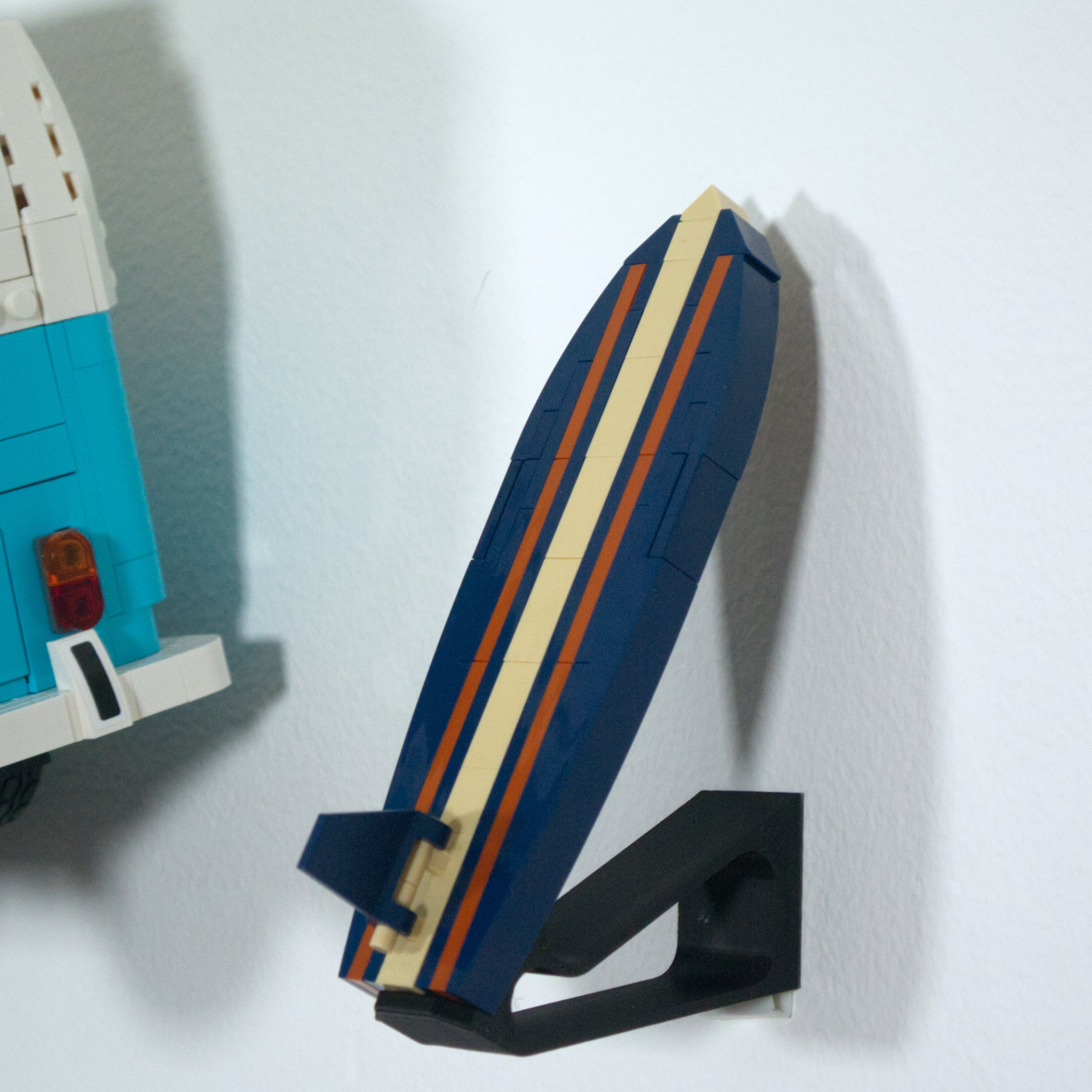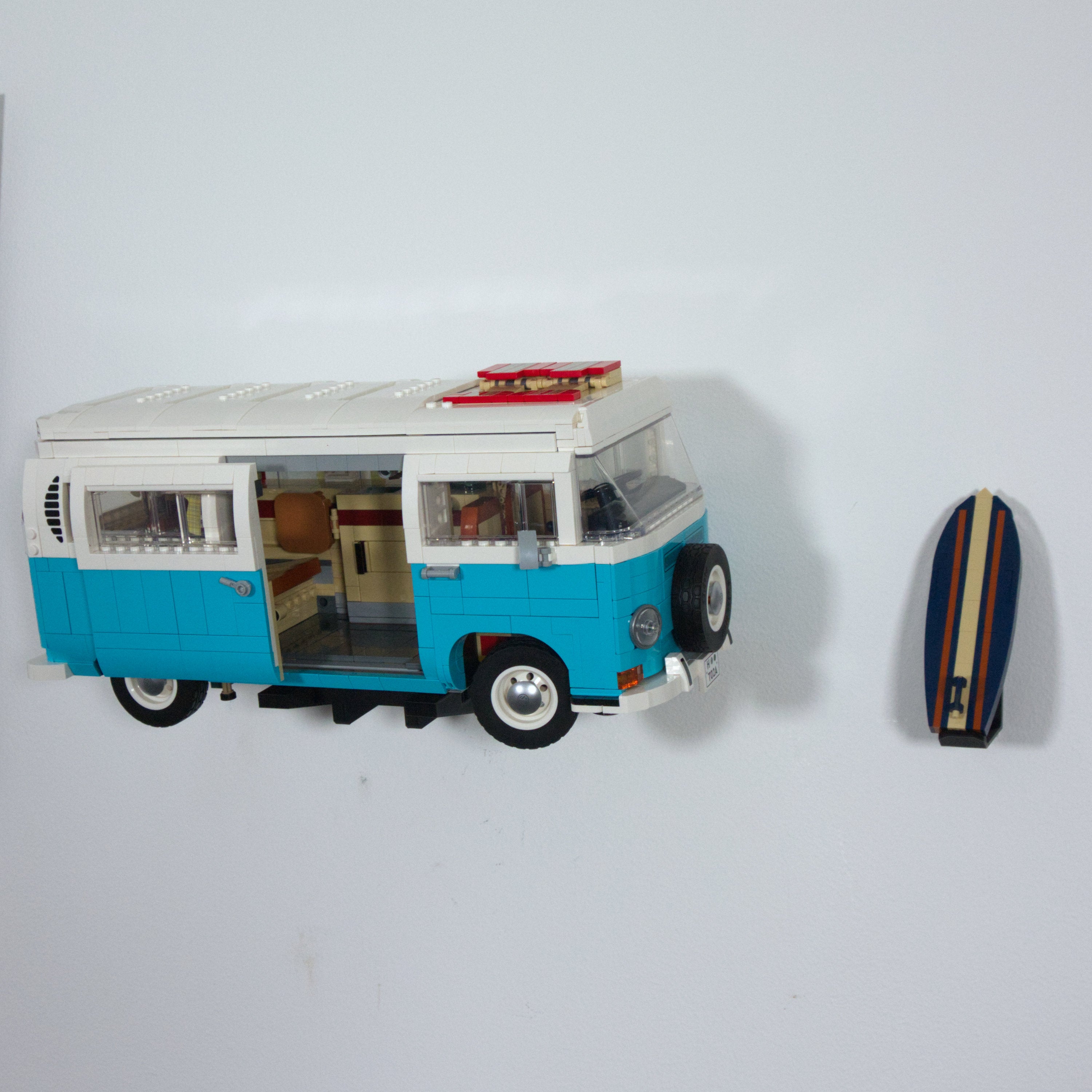 Ten uchwyt ścienny pozwala na poziome wyeksponowanie Twojego klockowego Volkswagena Transportera na ścianie. Jest kompatybilny zarówno z modelami T1, jak i T2 i umożliwia łatwe zdejmowanie samochodu. Dołączony jest oddzielny uchwyt na deskę surfingową, a sam główny uchwyt montuje się pojedynczą śrubą.