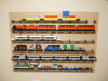 - Umożliwia eksponowanie pociągów LEGO lub tworzenie stałej trasy pociągu wzdłuż ścianów.