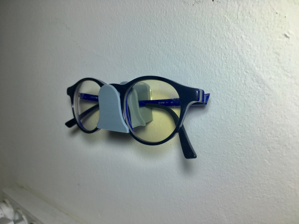 Prosty montaż ścienny do okularów / okularów przeciwsłonecznych / cieni itp. Ten uchwyt został zaprojektowany do zawieszania okularów w praktyczny sposób. Montuje się go za pomocą pistoletu do kleju na gorąco bezpośrednio na ścianie. Ponadto dodano wersję z otworem do montażu za pomocą śruby dla dodatkowej możliwości mocowania.