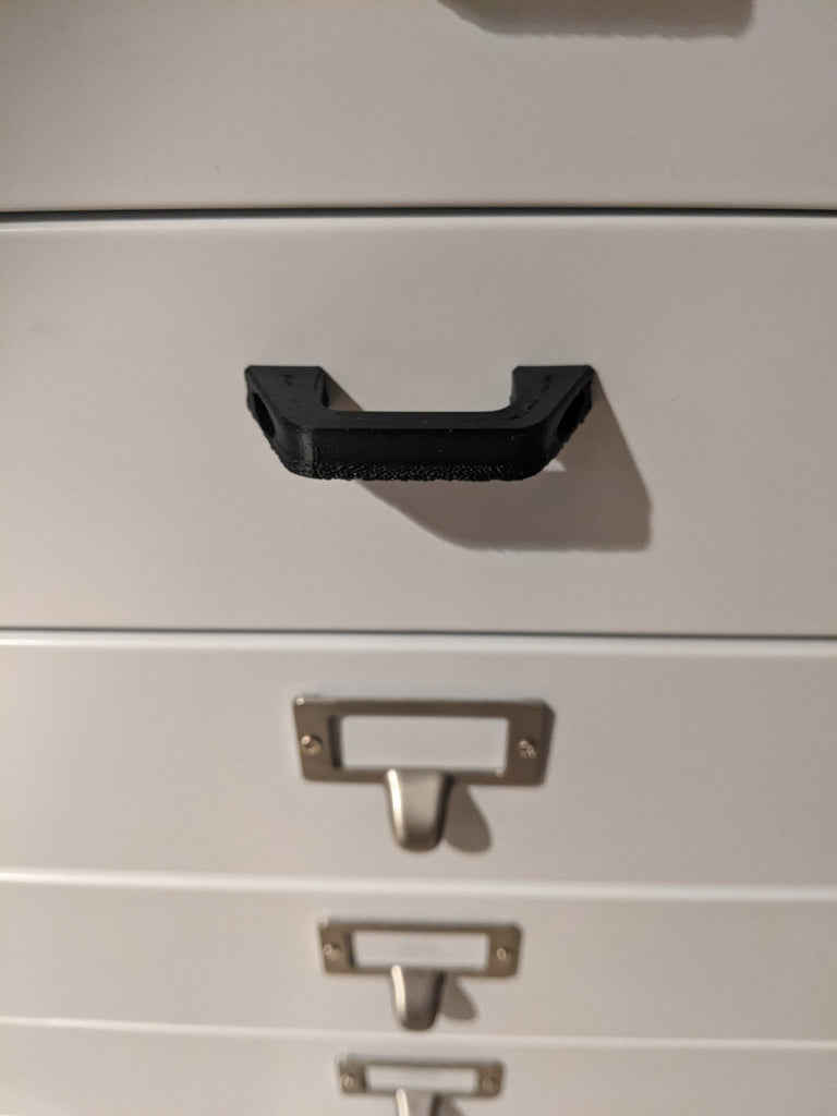 Zamienny uchwyt do wózka Becker z kolekcji Home Decorators Collection. Pasuje do wszystkich wózków do przechowywania z wieloma szufladami z kolekcji Home Decorators Collection Becker. Zastępuje oryginalne, niezwykle delikatne uchwyty w stylu szafki na dokumenty, wykorzystując oryginalne śruby. Rozstaw otworów w środku wynosi 52 mm.