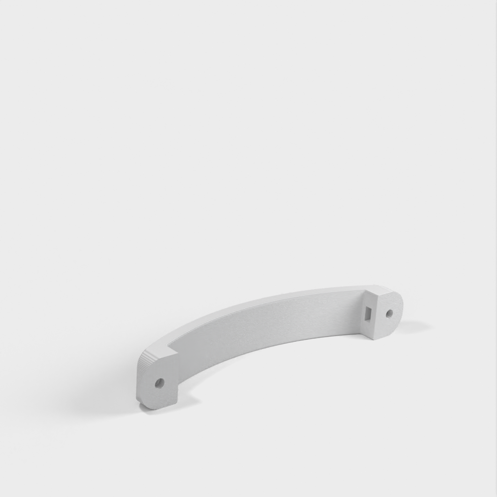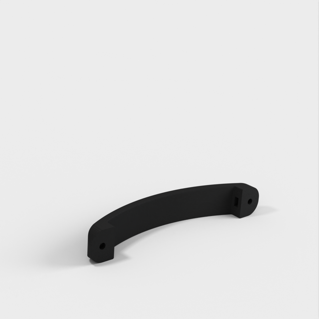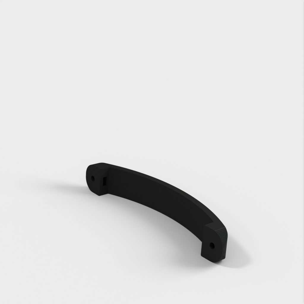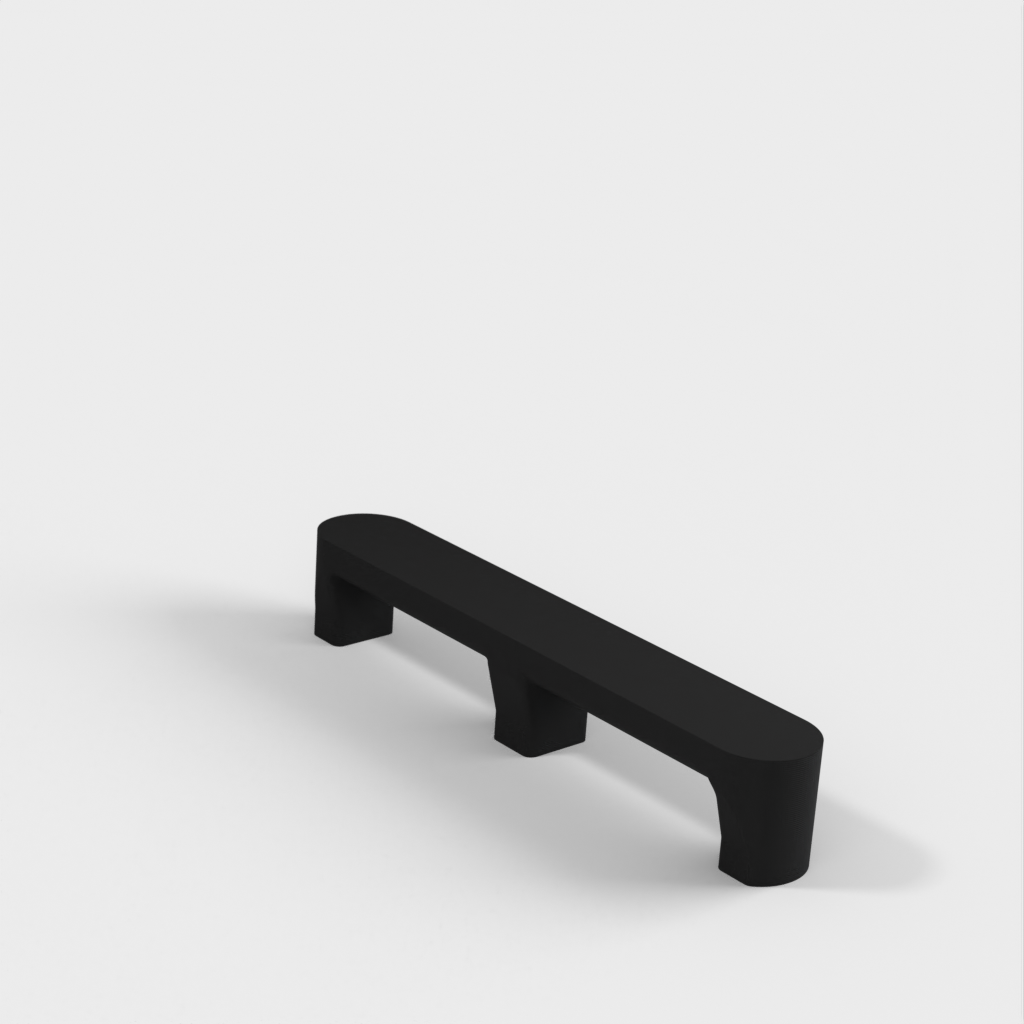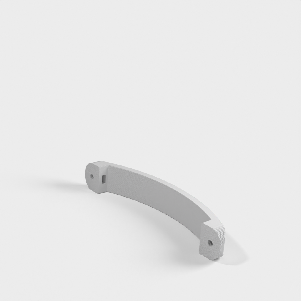 Zestaw uchwytów do szafek kuchennych obejmuje cztery różne modele: uchwyt koszowy z odległością między środkami otworów 128 mm, gałkę koszową z jednym otworem, dwie proste gałki, każda z jednym otworem, oraz prosty uchwyt z trzema otworami - jednym pośrodku i dwoma po bokach, z odległością między środkami zewnętrznych otworów 128 mm. Do montażu należy włożyć nakrętki M4 w otwory i użyć śrub M4 przez drzwiczki meblowe.