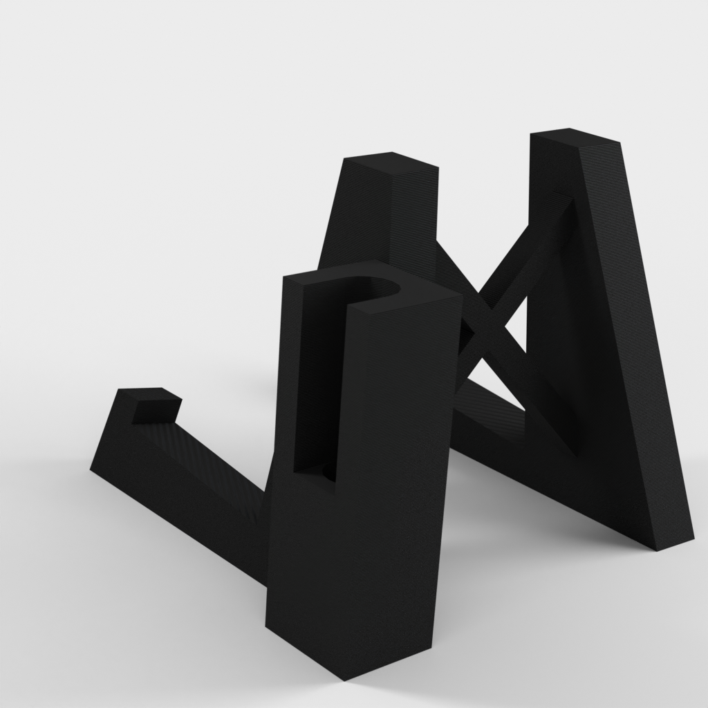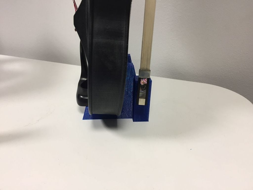 Stojak na skrzypce, który zawiera uchwyt na smyczek.