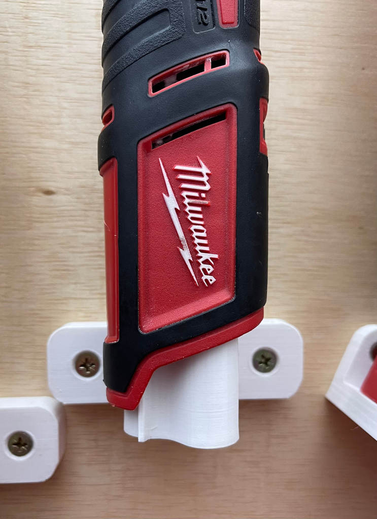 Jest to uchwyt ścienny do narzędzi Milwaukee M12. Główne ulepszenia obejmują obrócony uchwyt o 90 stopni, dzięki czemu narzędzie jest teraz równoległe do ściany, na której jest zamontowane. Umożliwia to montaż większych narzędzi. Dodatkowo zwiększono wysokość ściany dla większego wsparcia i łatwiejszego dostępu do górnej śruby. Wreszcie średnica górnej śruby została zwiększona, a śruba teraz całkowicie się chowa.