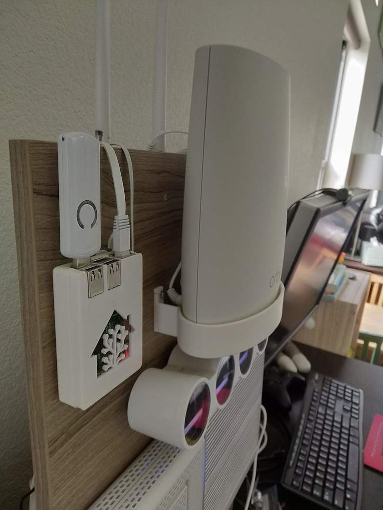 Prosty uchwyt ścienny do Netgear Orbi RBR50 i RBS50. Posiada otwartą siatkę na dole, aby zoptymalizować wentylację routera.