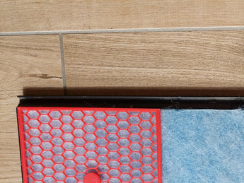Materiał filtrujący jest skutecznie zabezpieczony na miejscu za pomocą solidnej siatki i odpowiednich kołków. Dla optymalnej stabilności zaleca się stosowanie dwóch punktów mocowania na filtr. Produkt wykonany jest z materiału ABS, znanego ze swojej trwałości, co zapewnia długą żywotność filtra wymiennego.