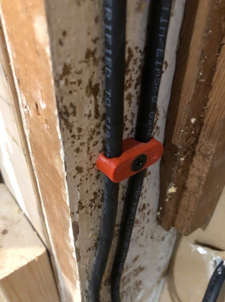 Ten funkcjonalny zacisk kablowy został stworzony do organizowania i mocowania dwóch kabli Ethernet obok siebie. Oferuje prosty i skuteczny sposób na utrzymanie kabli sieciowych na miejscu, niezależnie od tego, czy biegną wzdłuż ścian, pod stołami, czy na kołku. Jako solidny uchwyt na kabel zapewnia, że kable pozostają uporządkowane oraz zapobiega plątaniu się i niepotrzebnemu obciążeniu. Montaż jest prosty, ponieważ zacisk jest wyposażony w otwór na śrubę przeznaczony do standardowych śrub, w tym śrub do płyt gipsowo-kartonowych, co zapewnia bezpieczne i trwałe mocowanie. Ten zacisk do przewodów to praktyczne rozwiązanie do zarządzania kablami, które przyczynia się do bardziej zorganizowanej i funkcjonalnej przestrzeni.