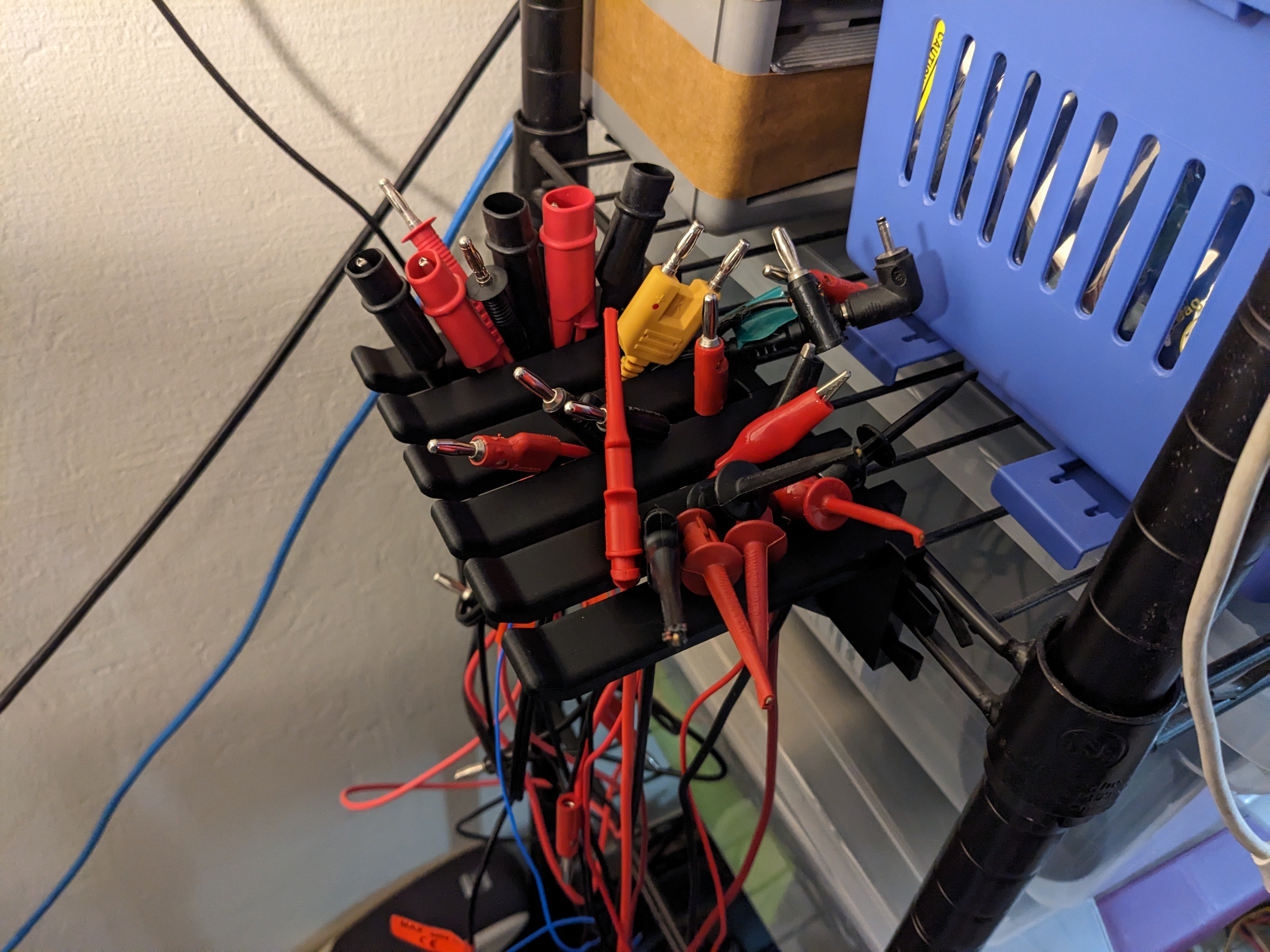 Ten wieszak na kable został zaprojektowany, aby zapewnić elastyczne i zorganizowane rozwiązanie do przechowywania przewodów pomiarowych, kabli i innych akcesoriów. Można go łatwo zamontować na krawędzi półek drucianych HDX – lub podobnych półek z rurami 7/16" – i można go umieścić z przodu lub z boku półki.